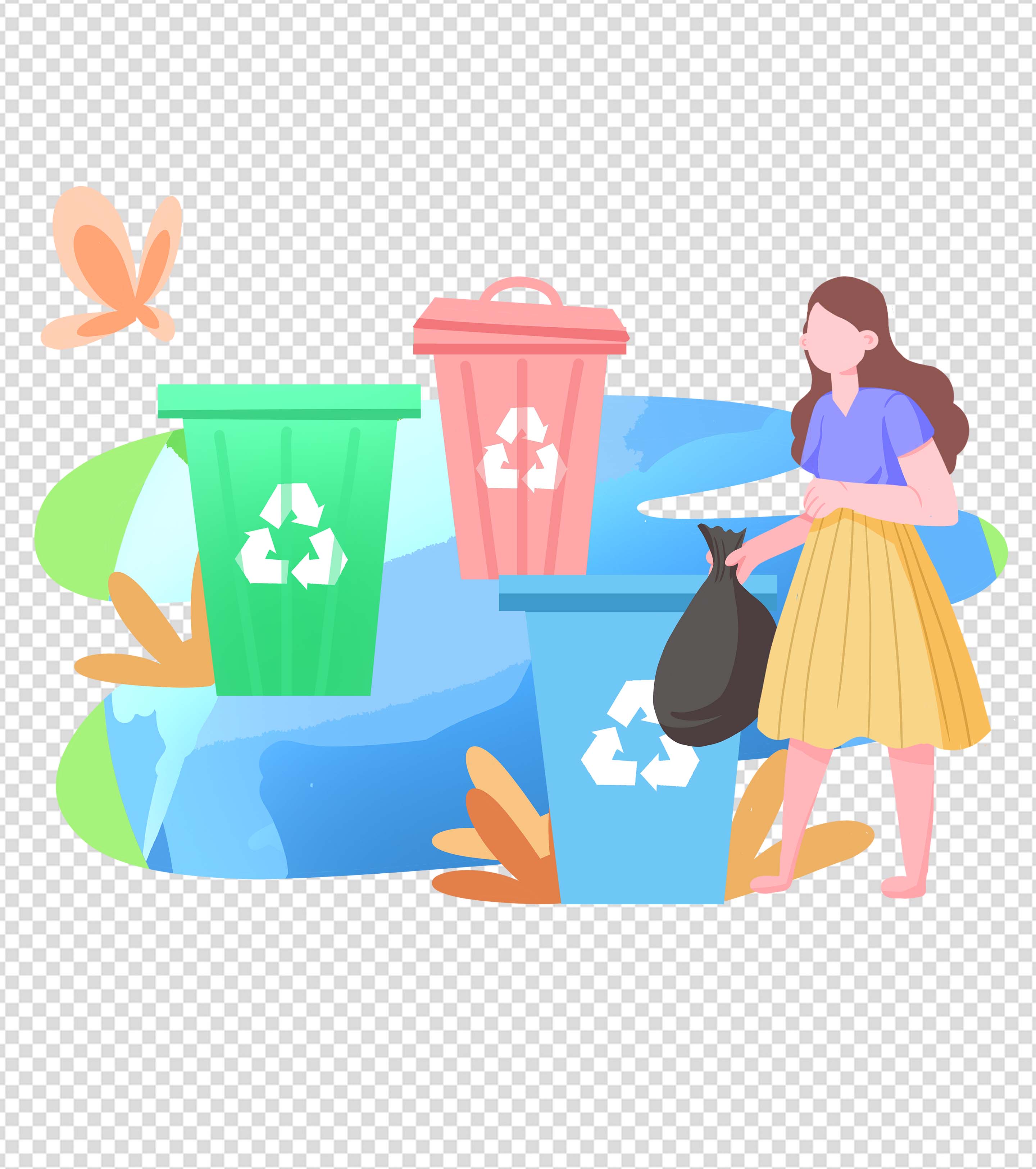 小清新垃圾分类手绘元素
