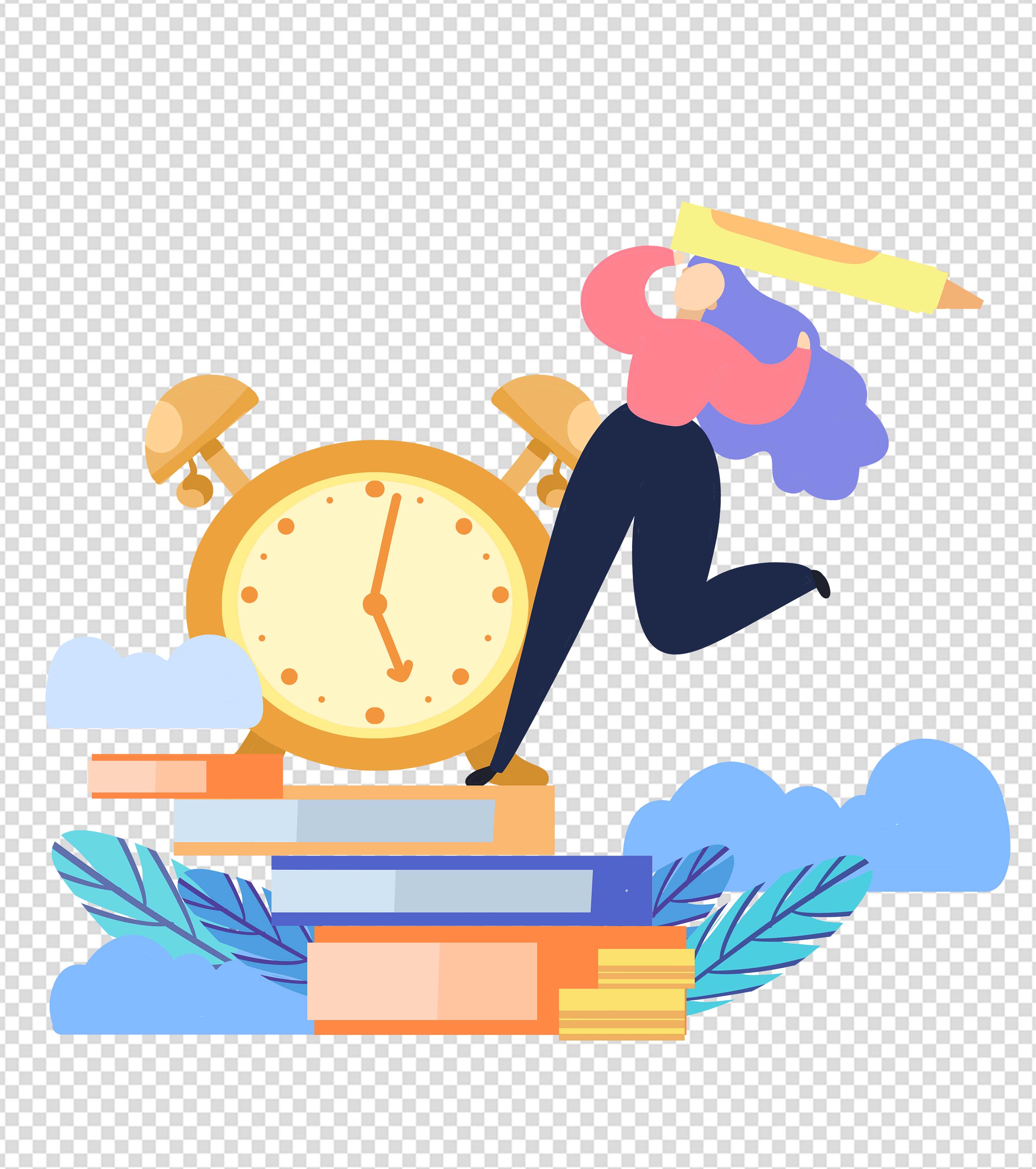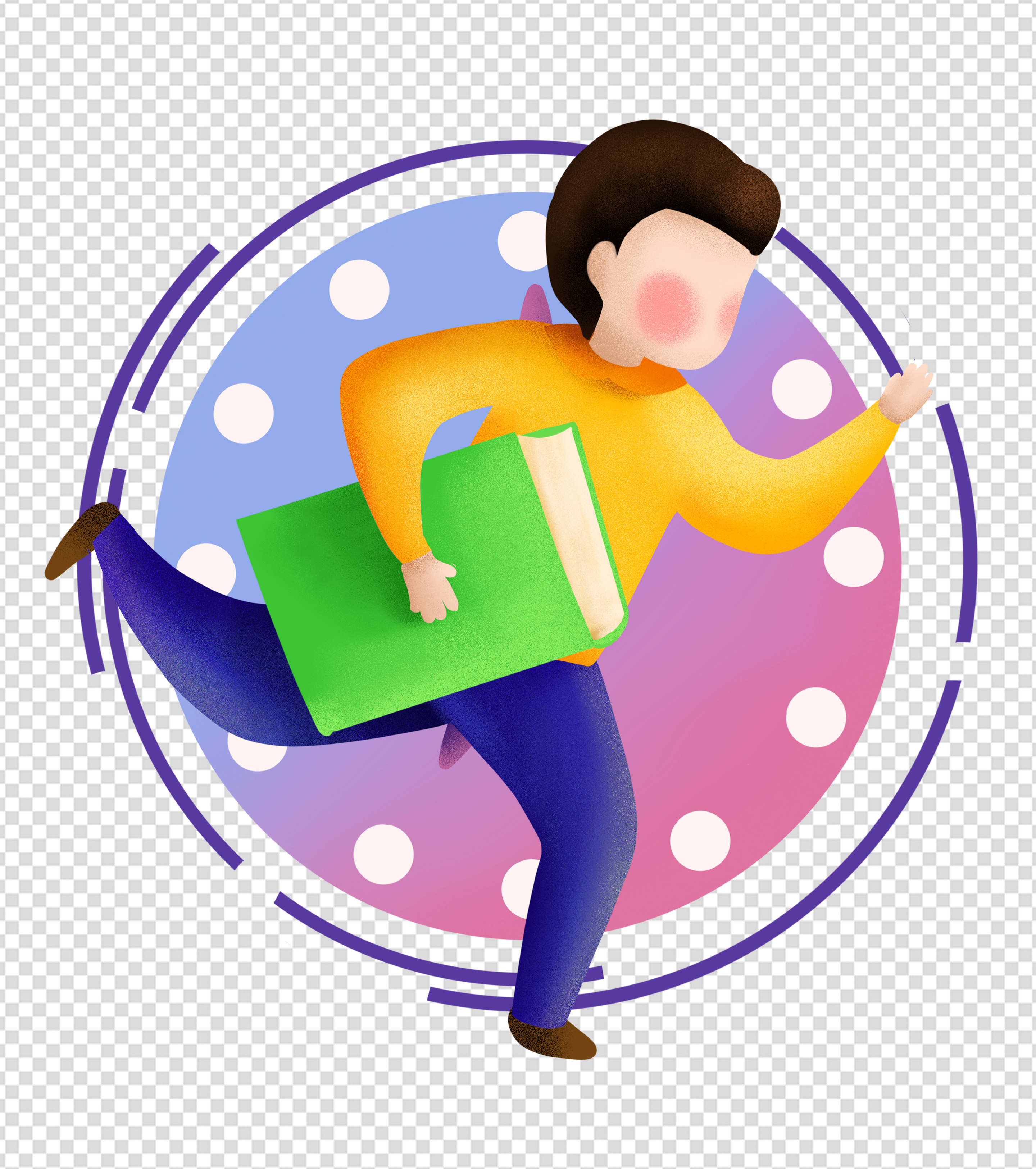 黄色书本女孩元素
