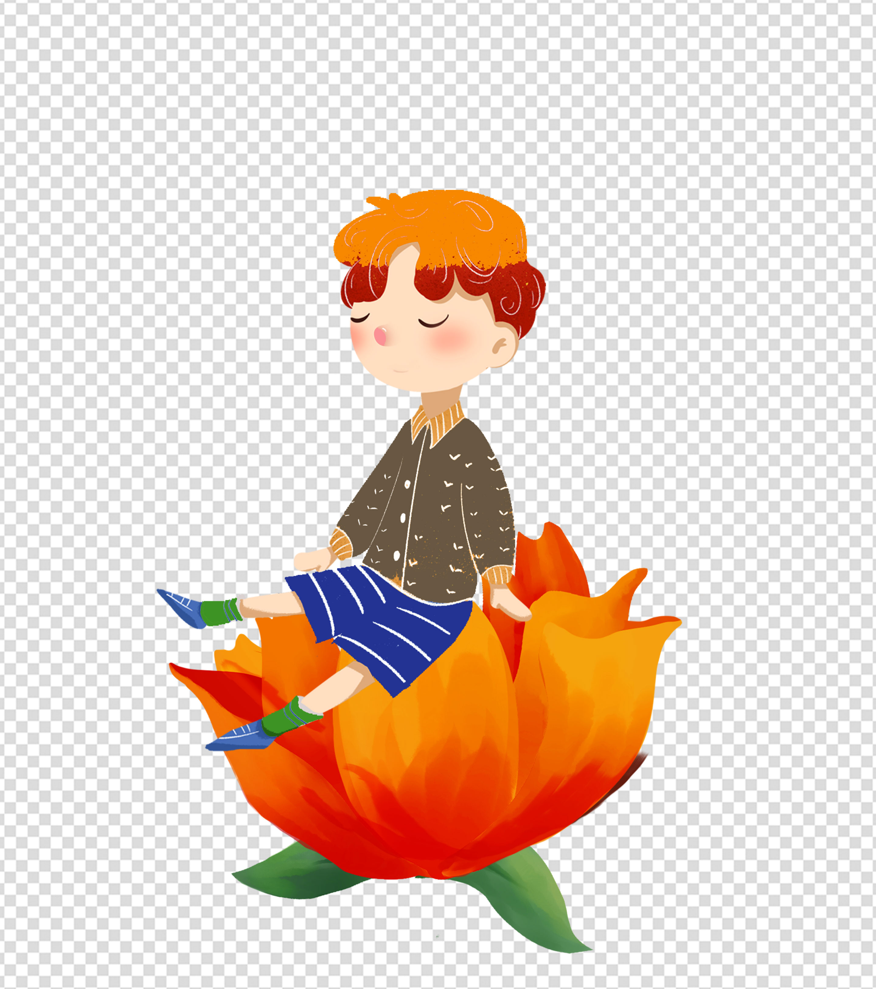 卡通黄色花朵小男孩手绘元素
