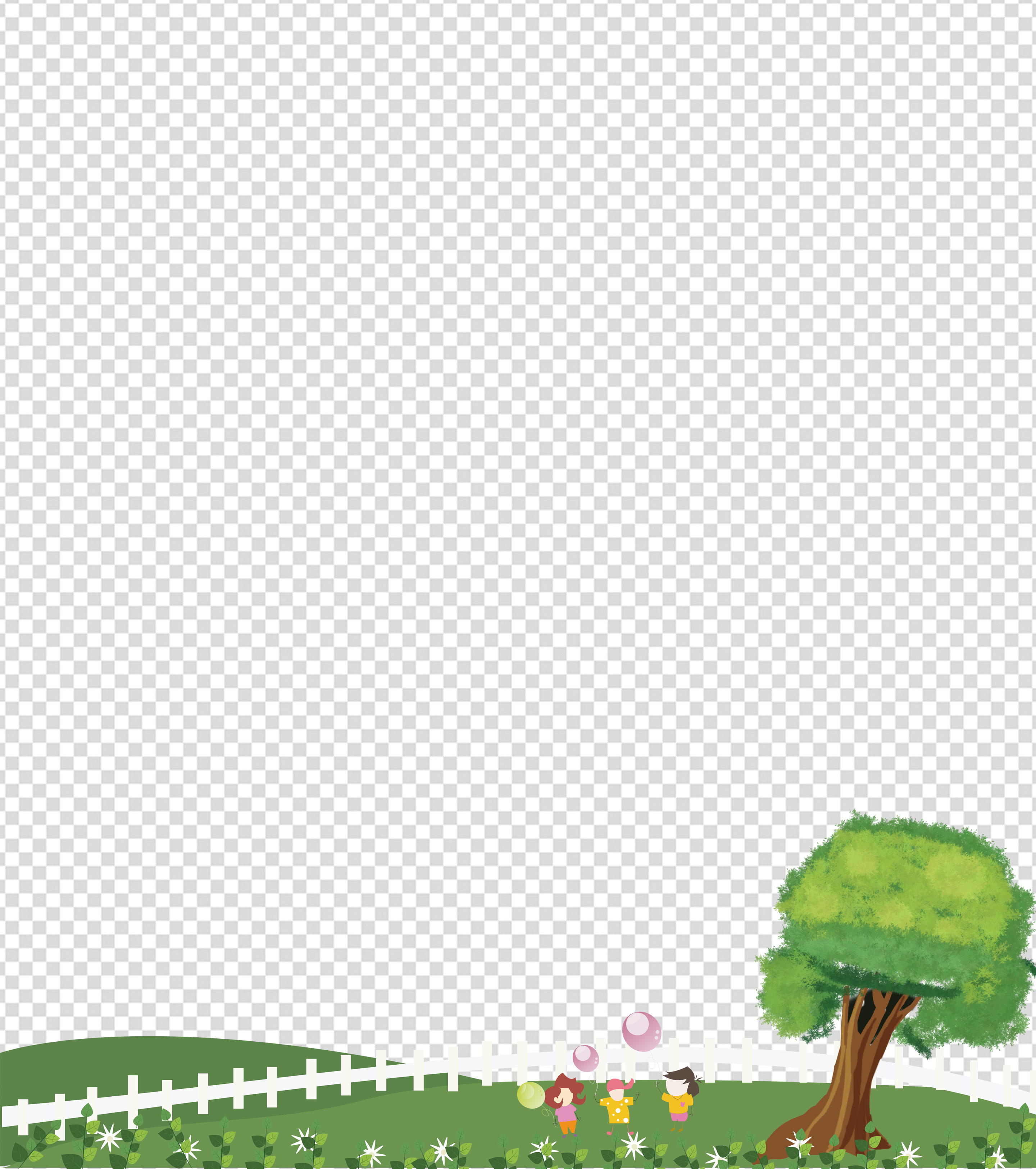 卡通树下小孩手绘元素