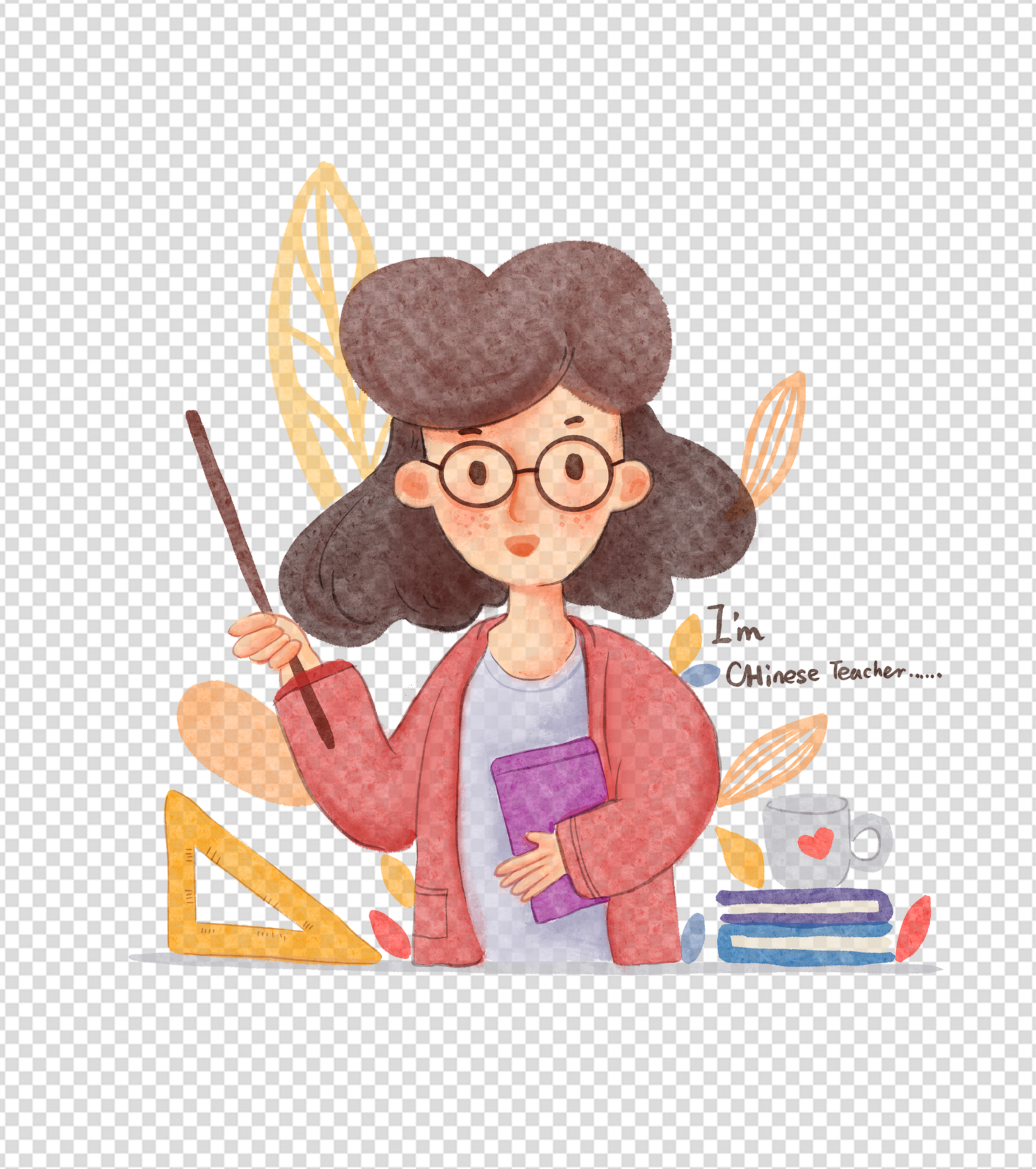 手绘女老师元素
