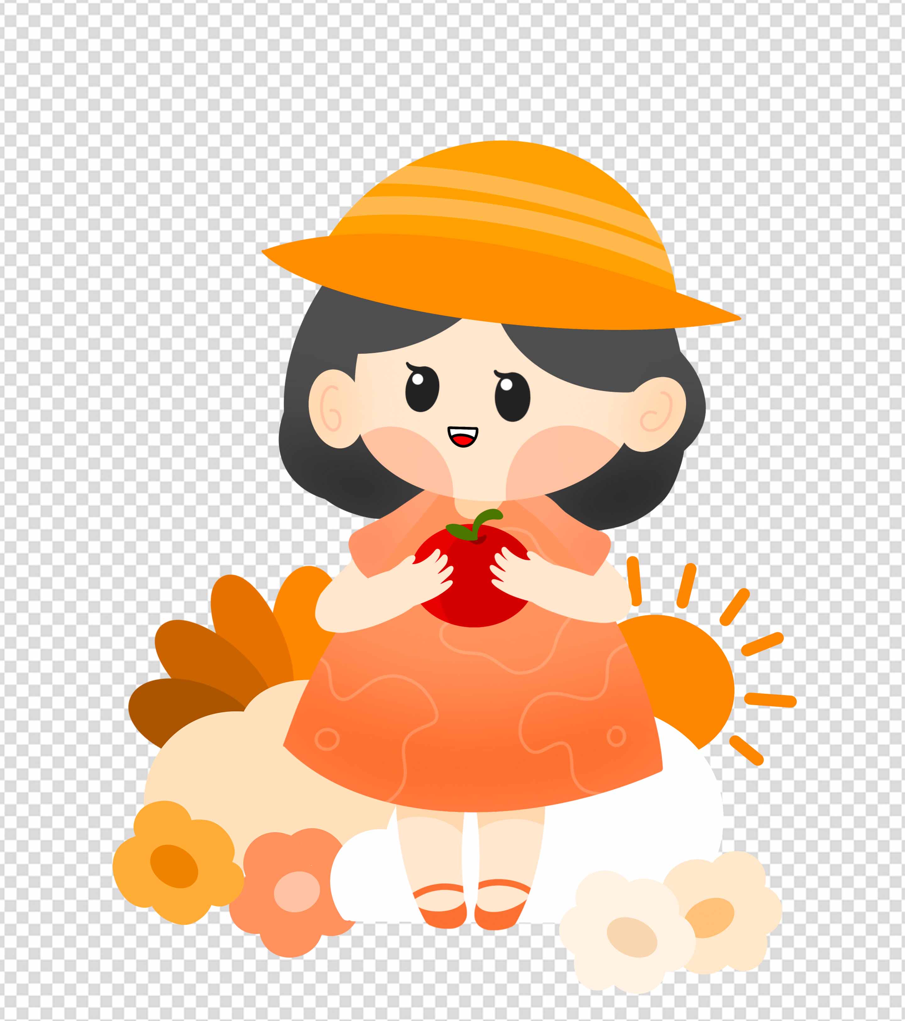 橙色阳光幼儿园女孩元素