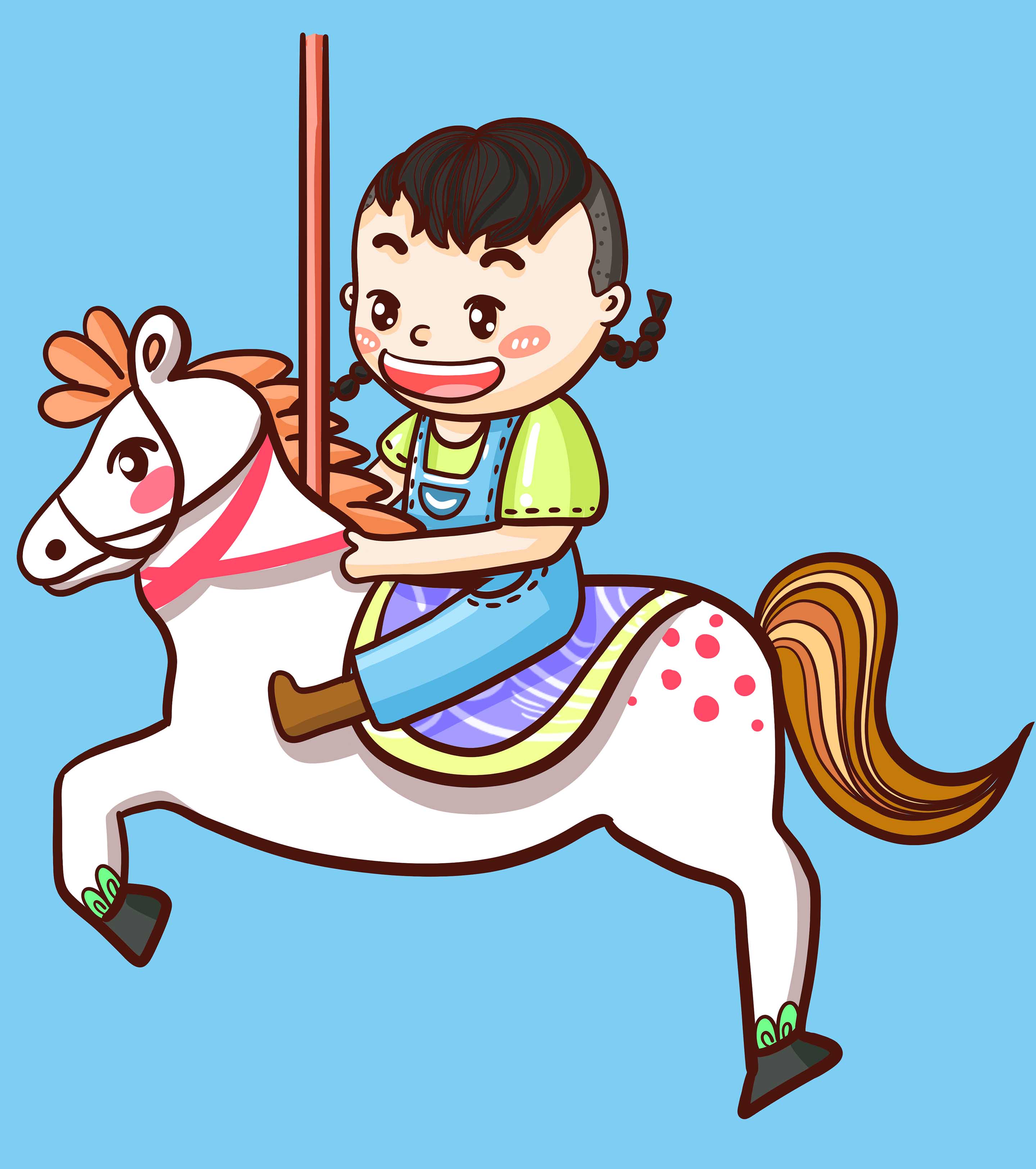 卡通蓝色可爱旋转木马儿童节元素