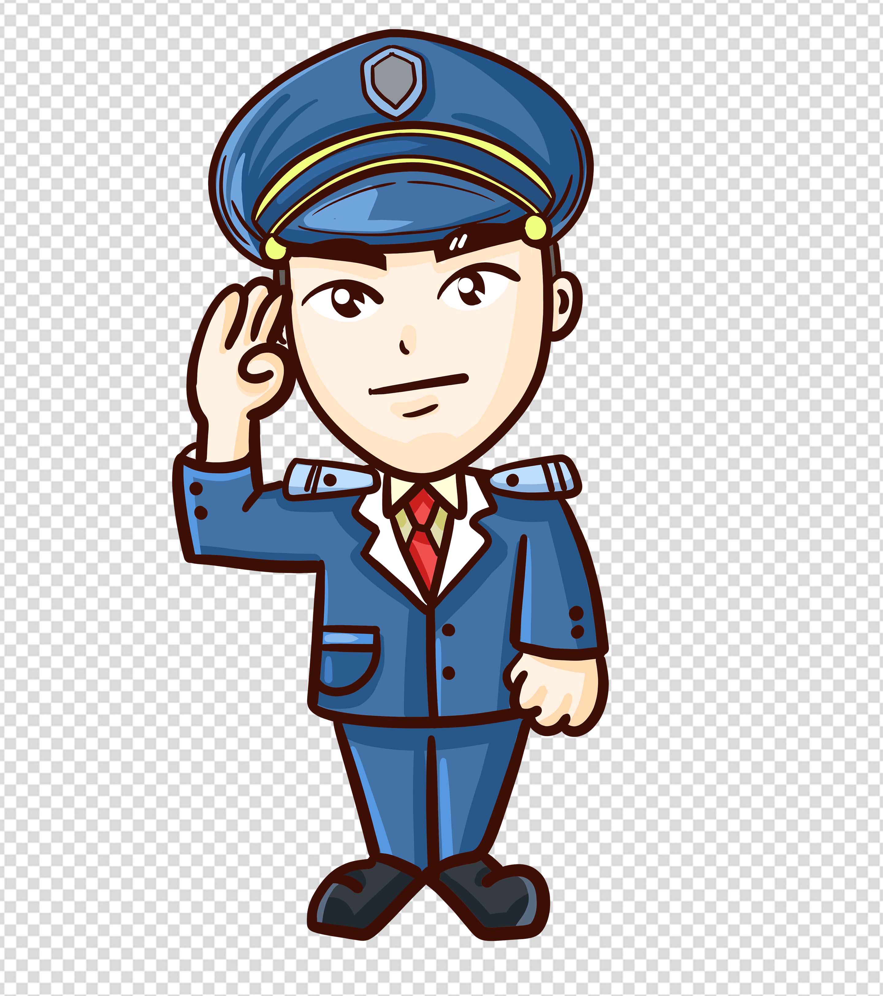 卡通蓝色敬礼人物公安手绘元素