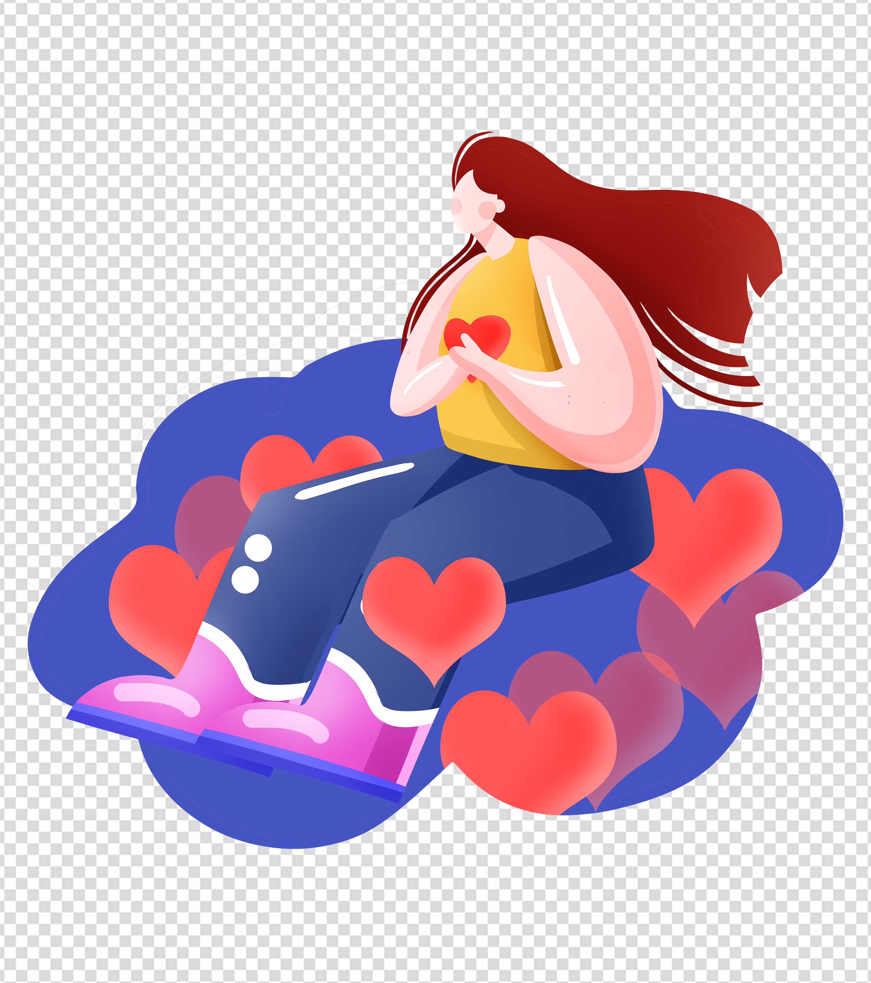 卡通红色蛋糕女孩手绘元素