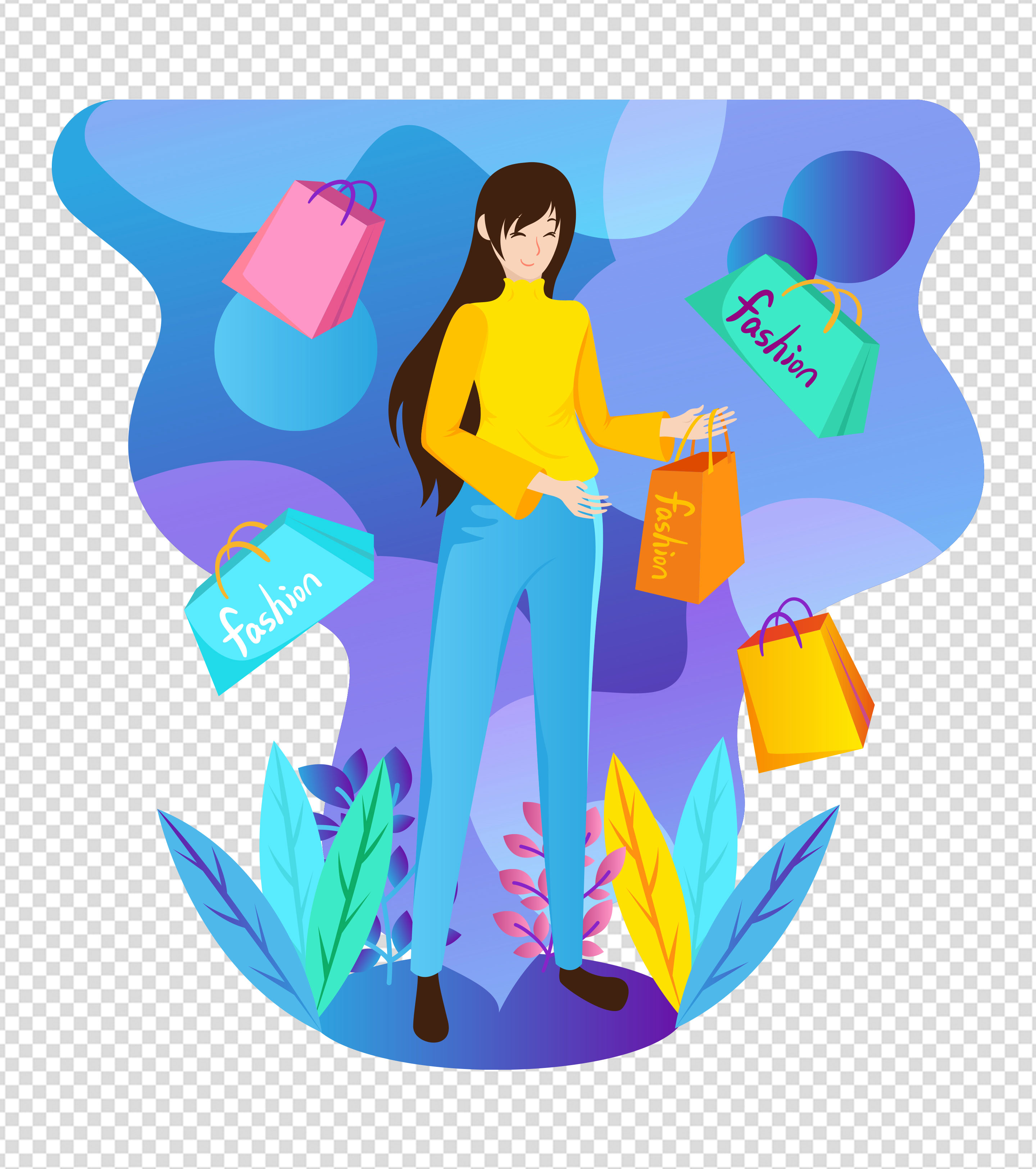 卡通蓝色时尚女人买手元素
