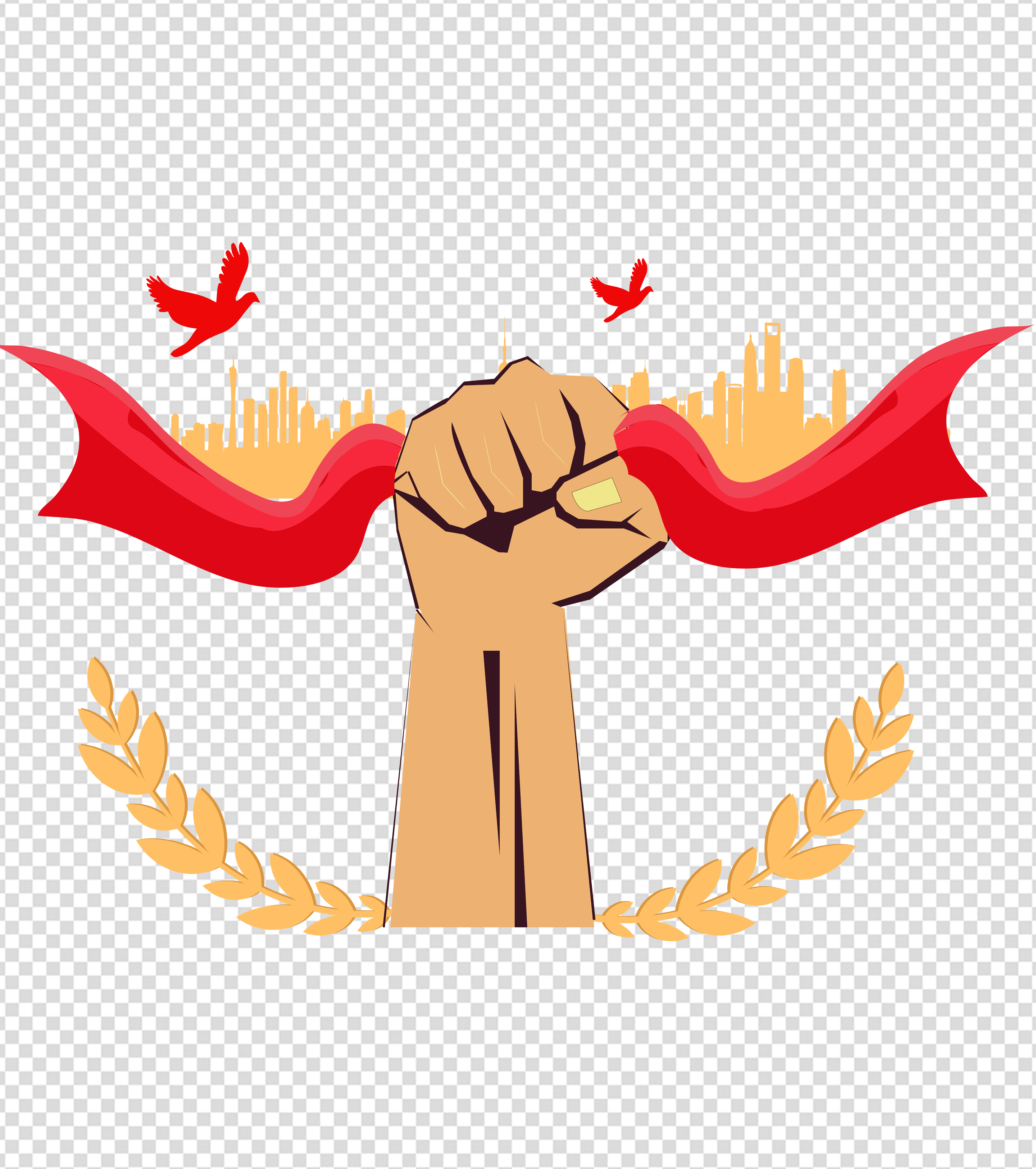 党建手握飘带元素