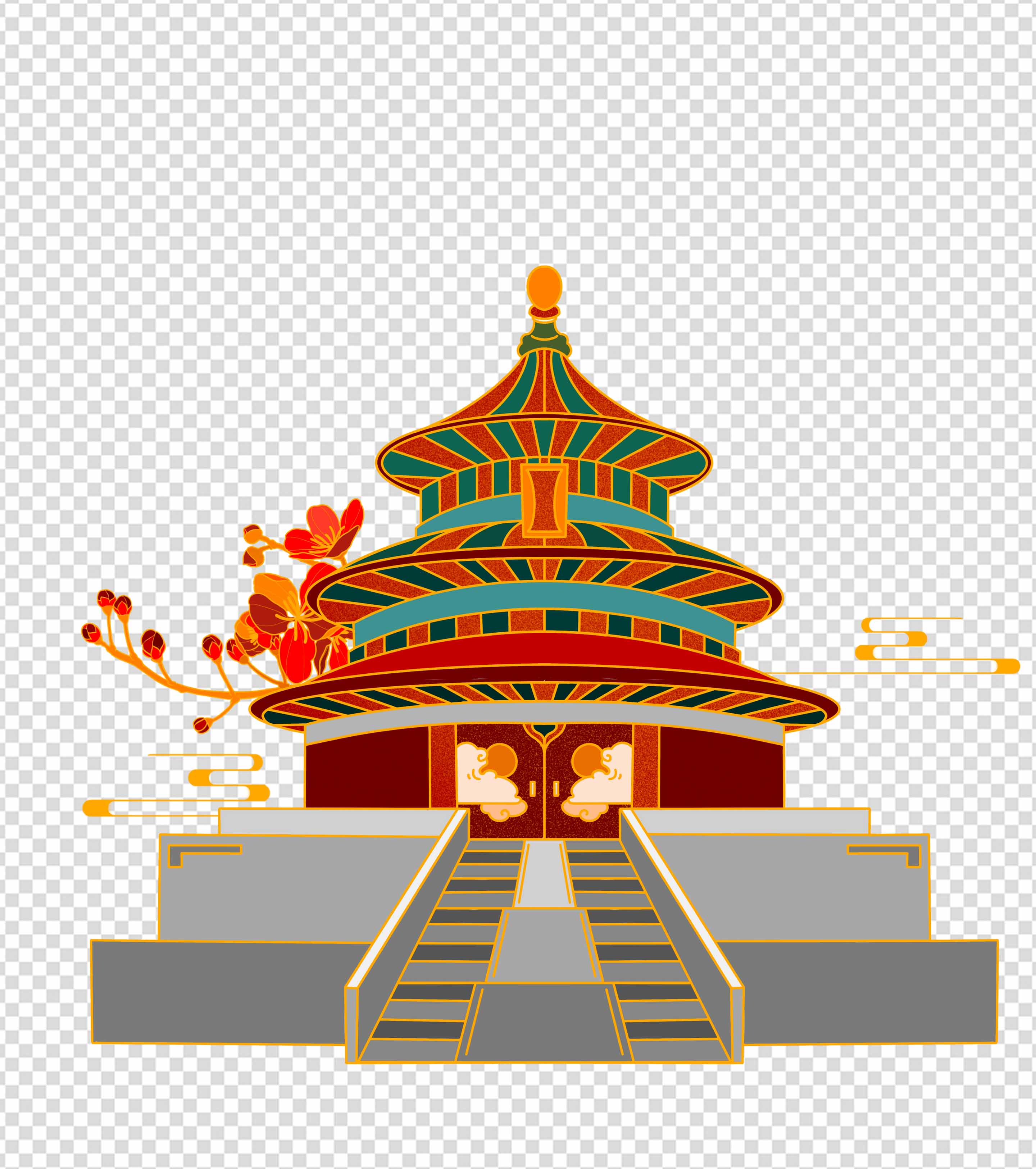 党建天坛手绘元素