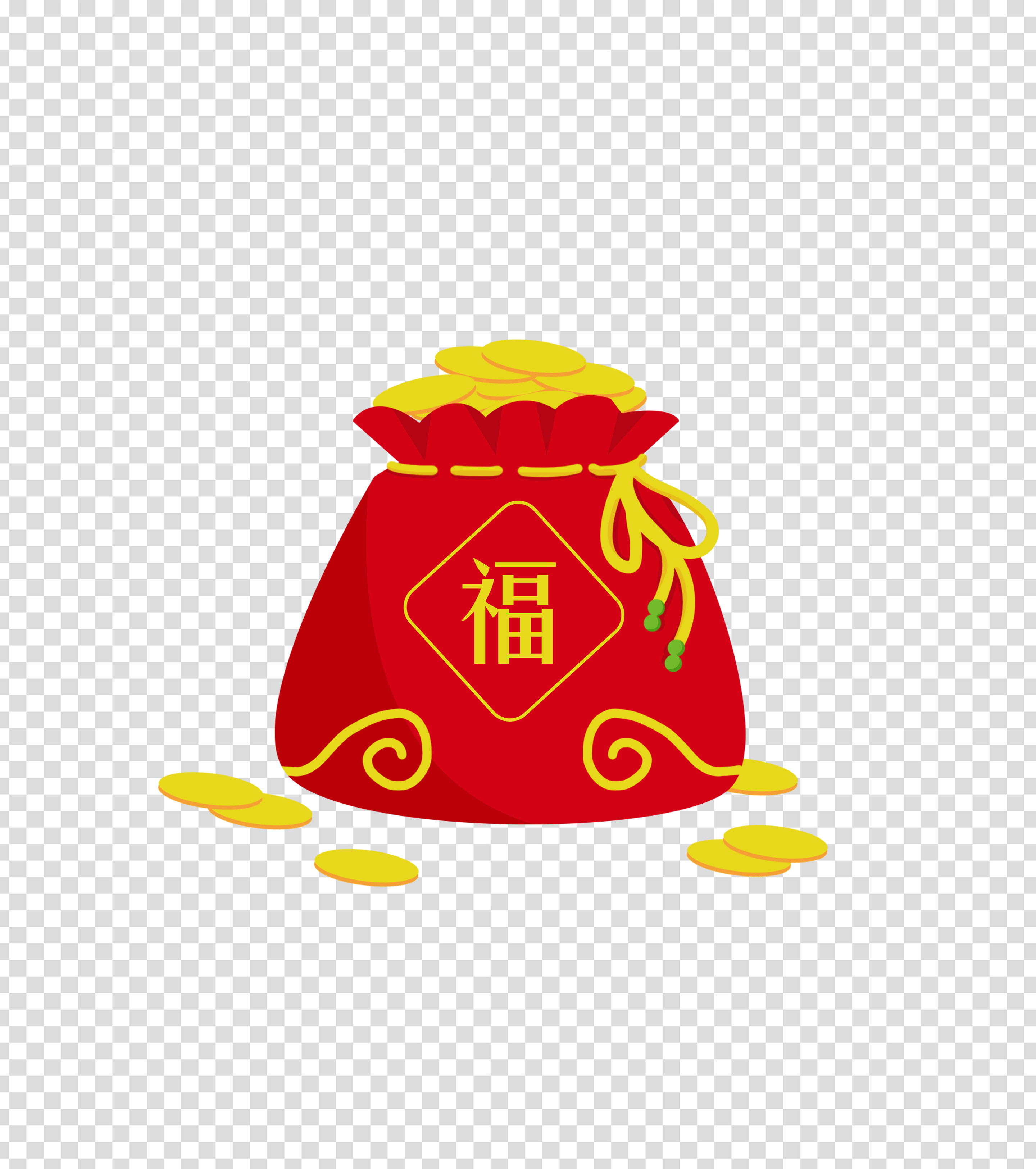 红色卡通福袋金币手绘元素