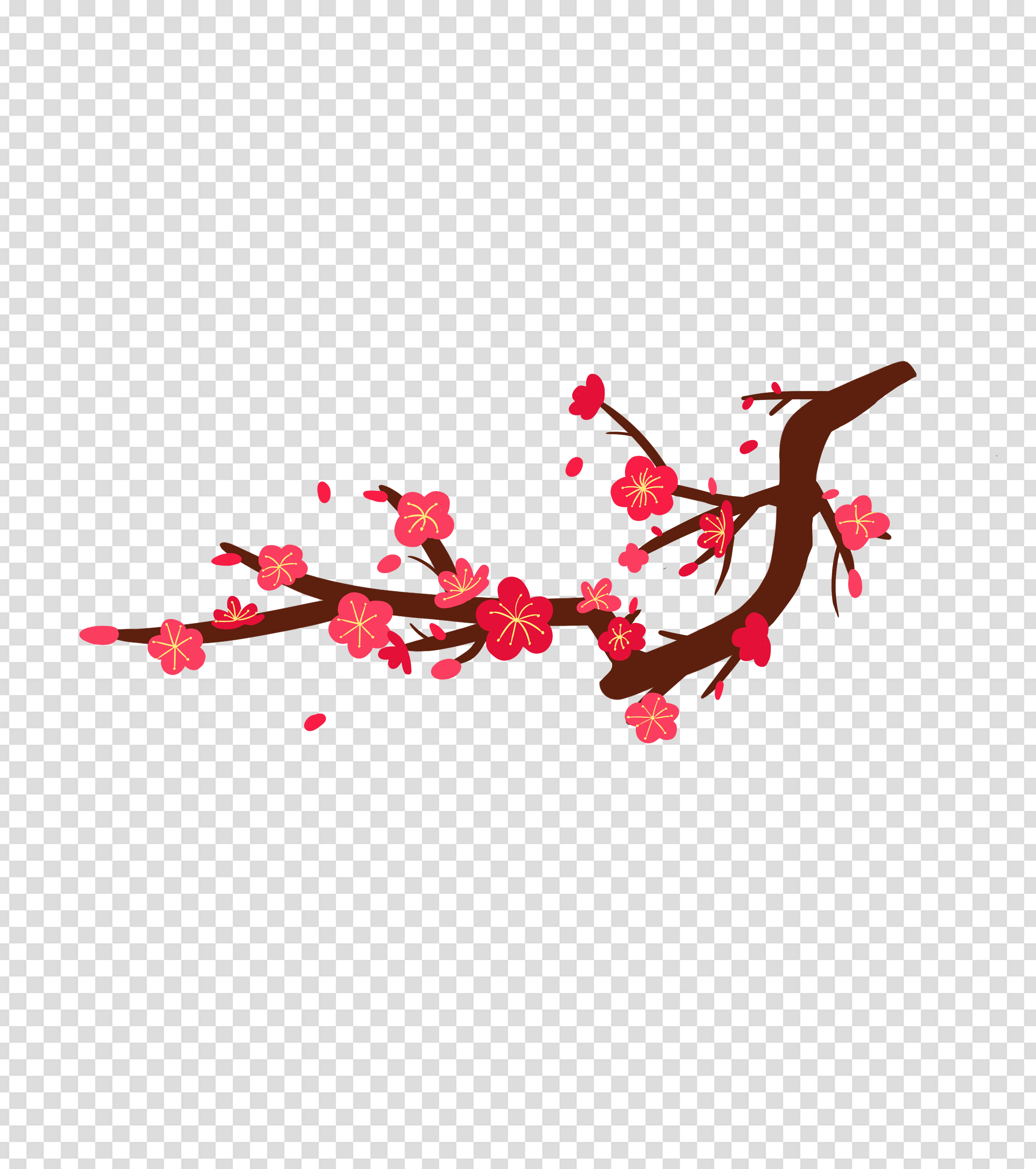 红色手绘梅花元素