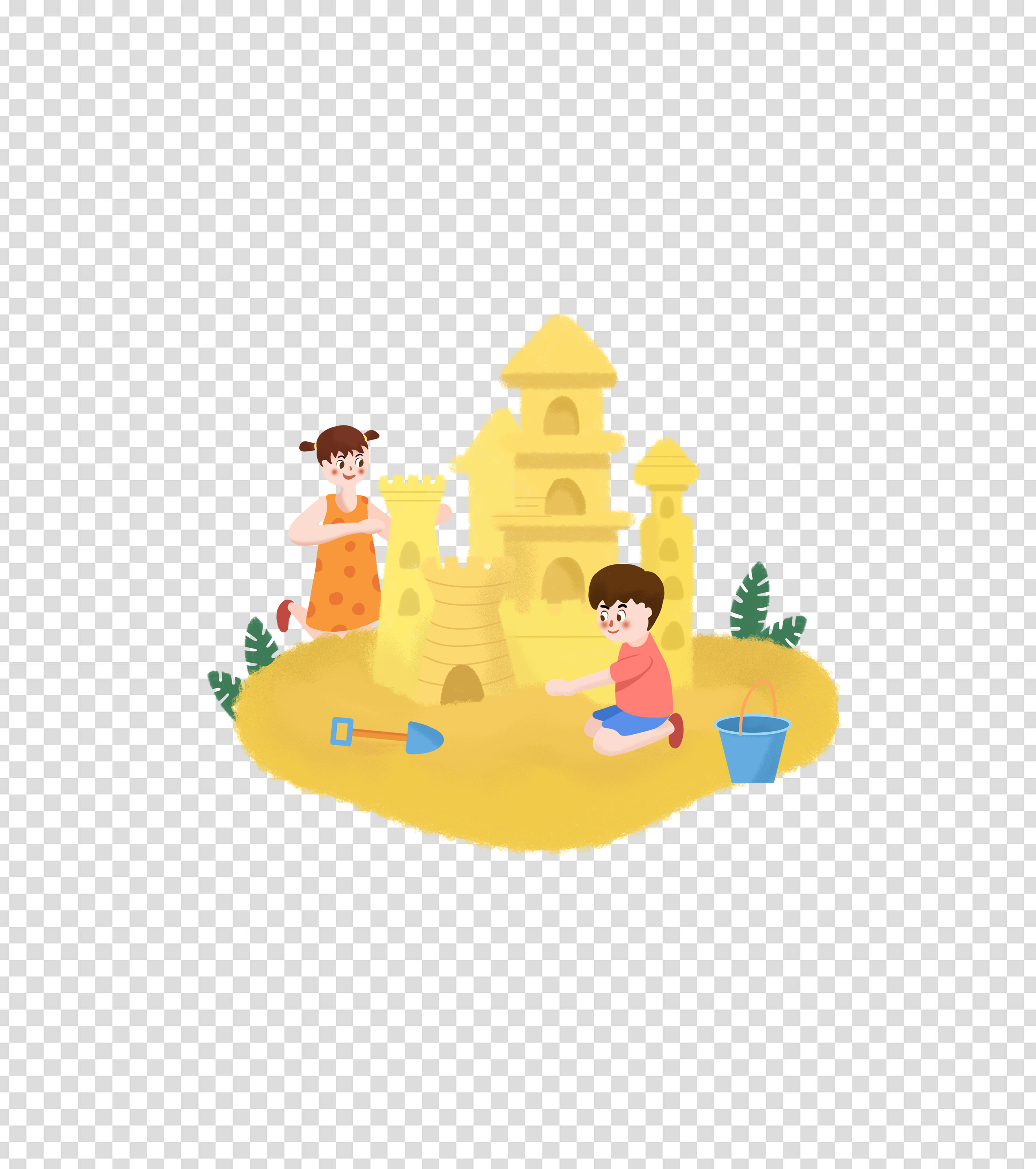 黄色卡通儿童沙堆玩耍元素