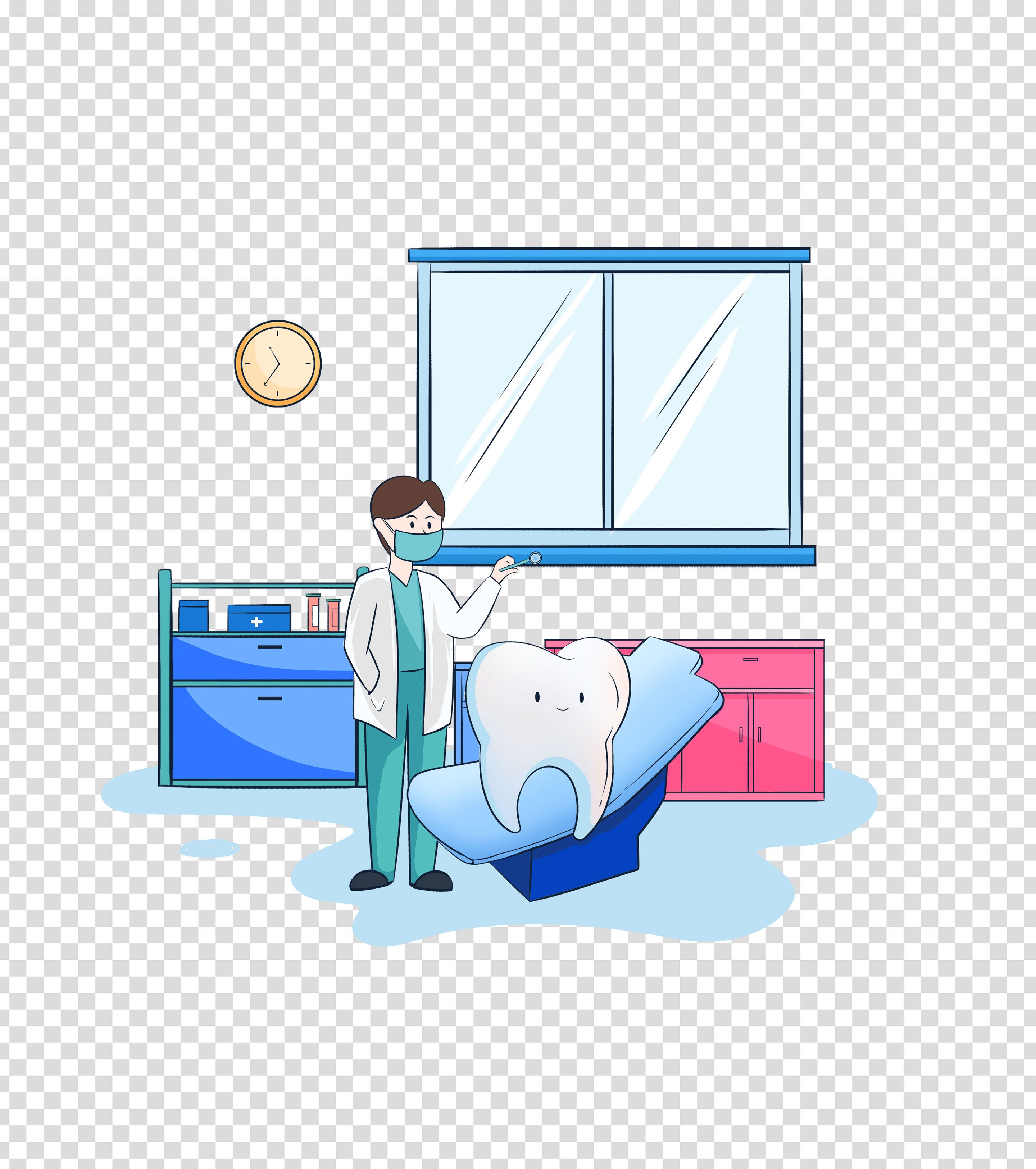 卡通牙医拔牙手绘元素
