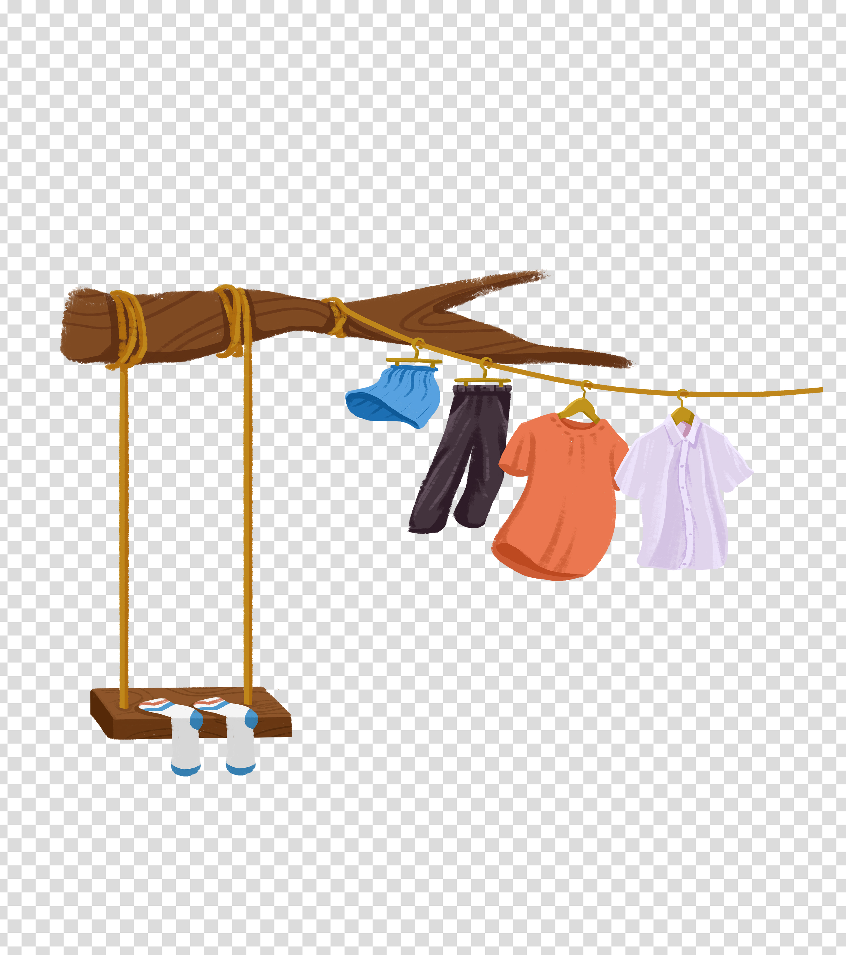 晾衣服场景手绘元素