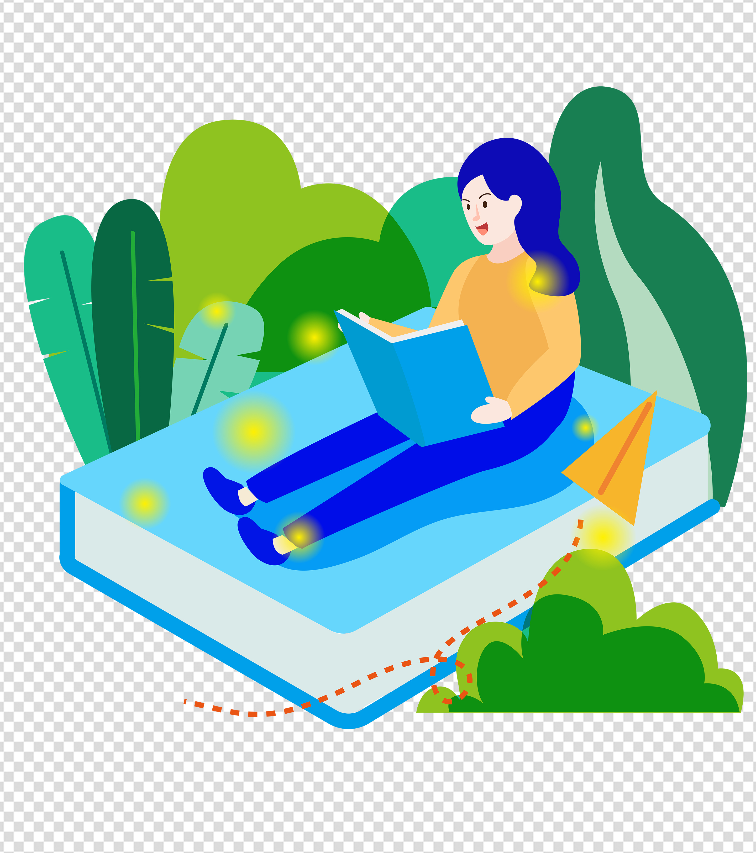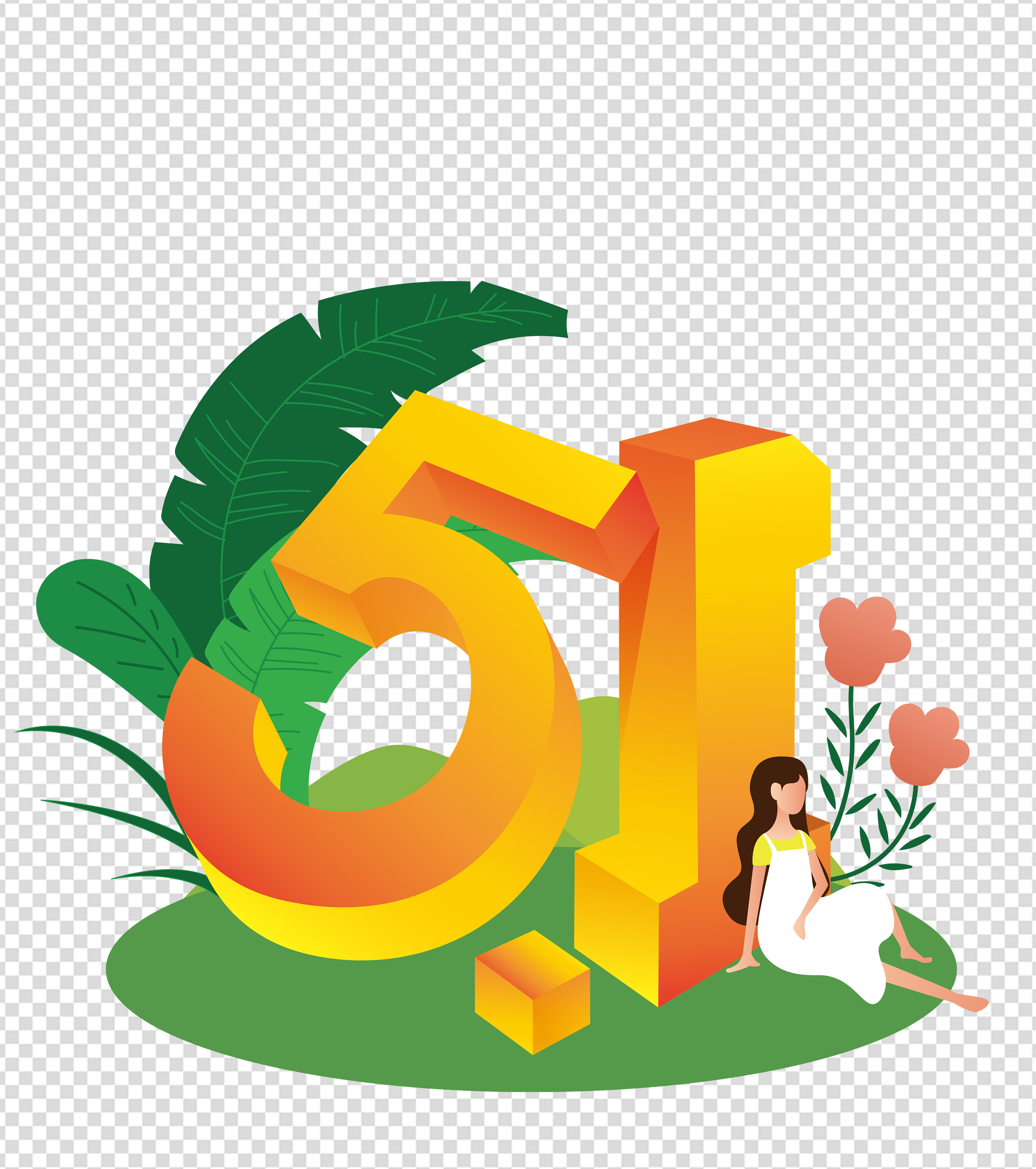 五一坐在草地上的女孩元素