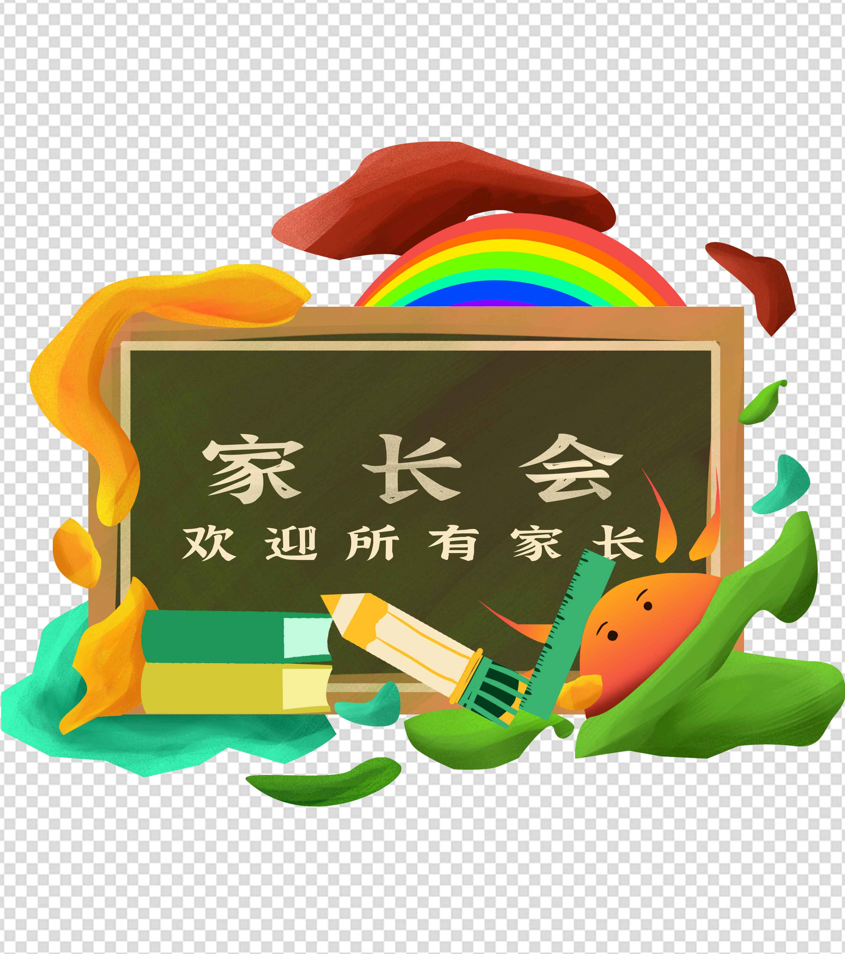 卡通可爱文具家长会手绘元素