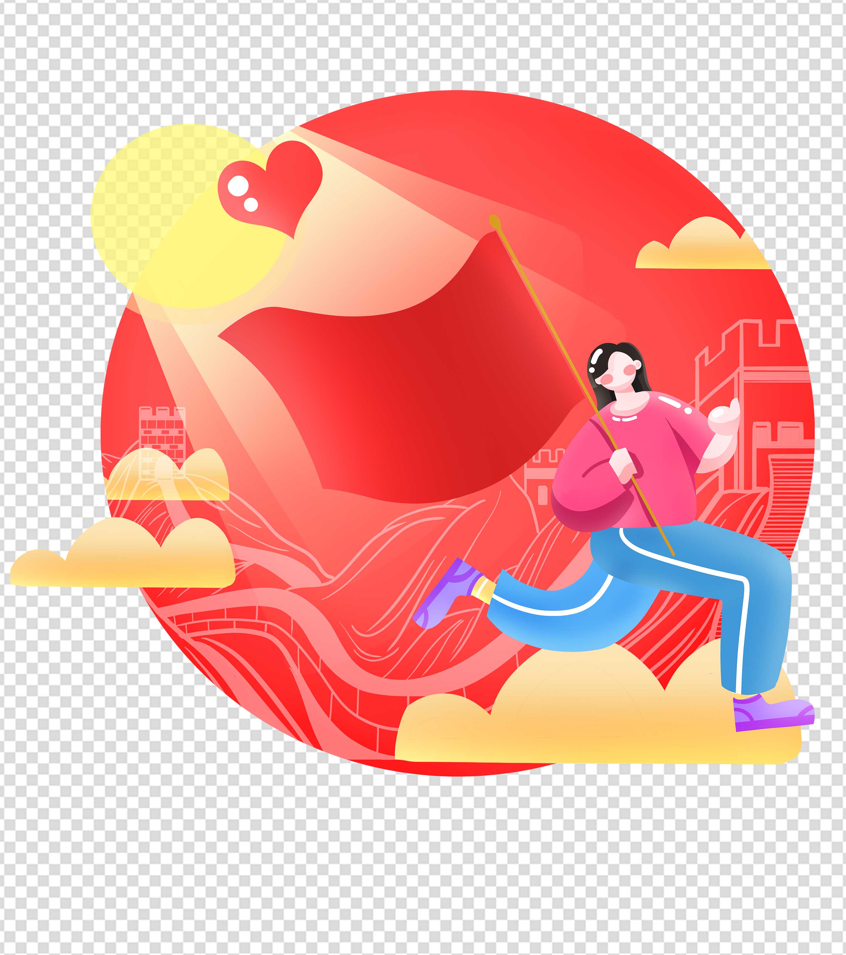 卡通红色长城红旗建党手绘元素