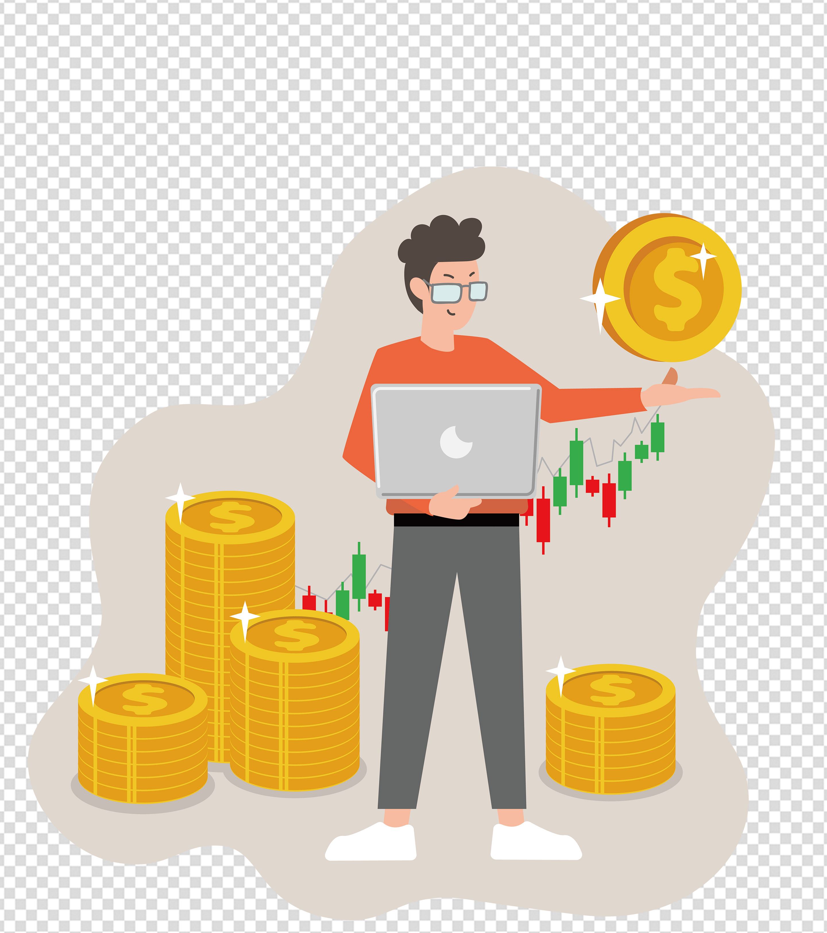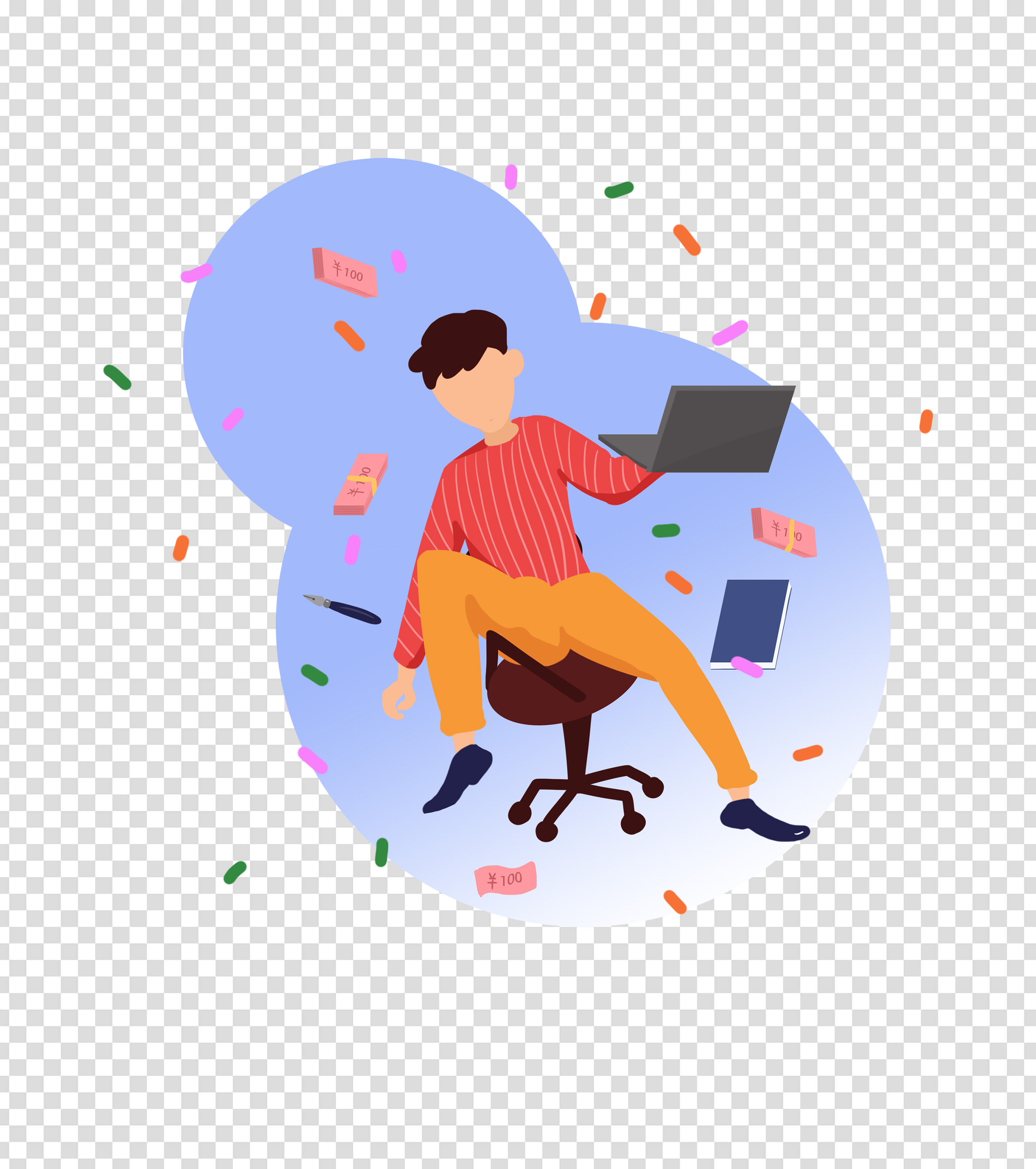 卡通电脑男人手绘元素