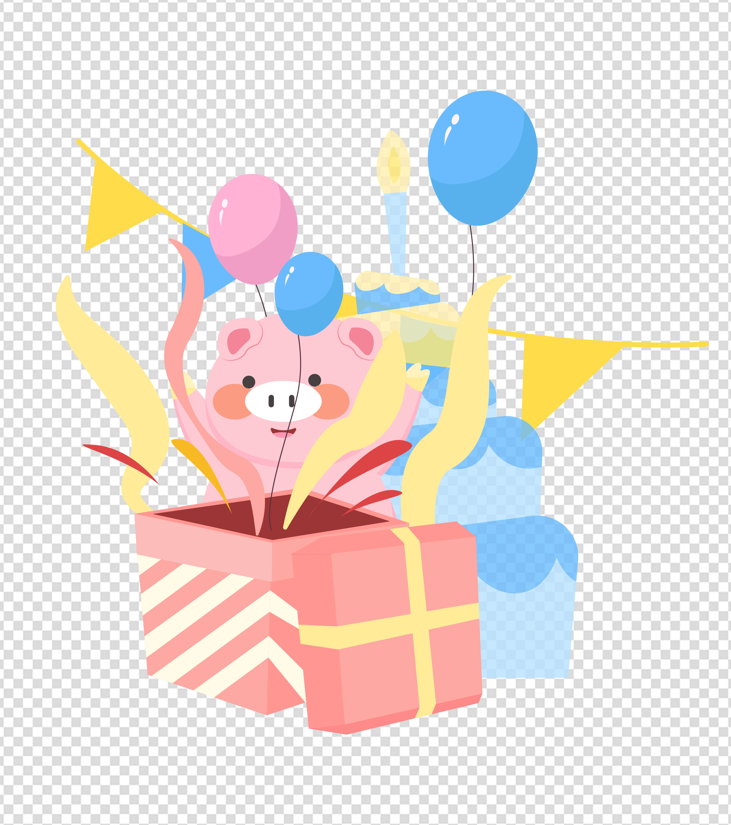 卡通小猪气球蛋糕生日元素