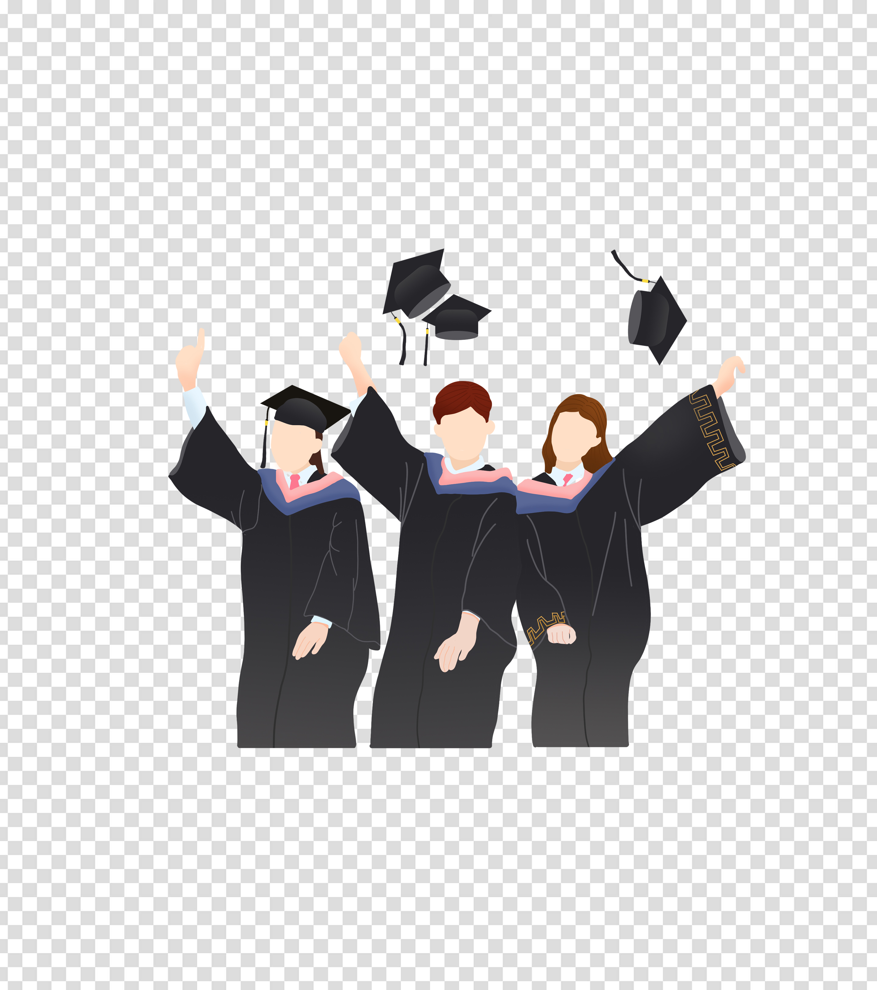 黑色卡通三人毕业季手绘元素