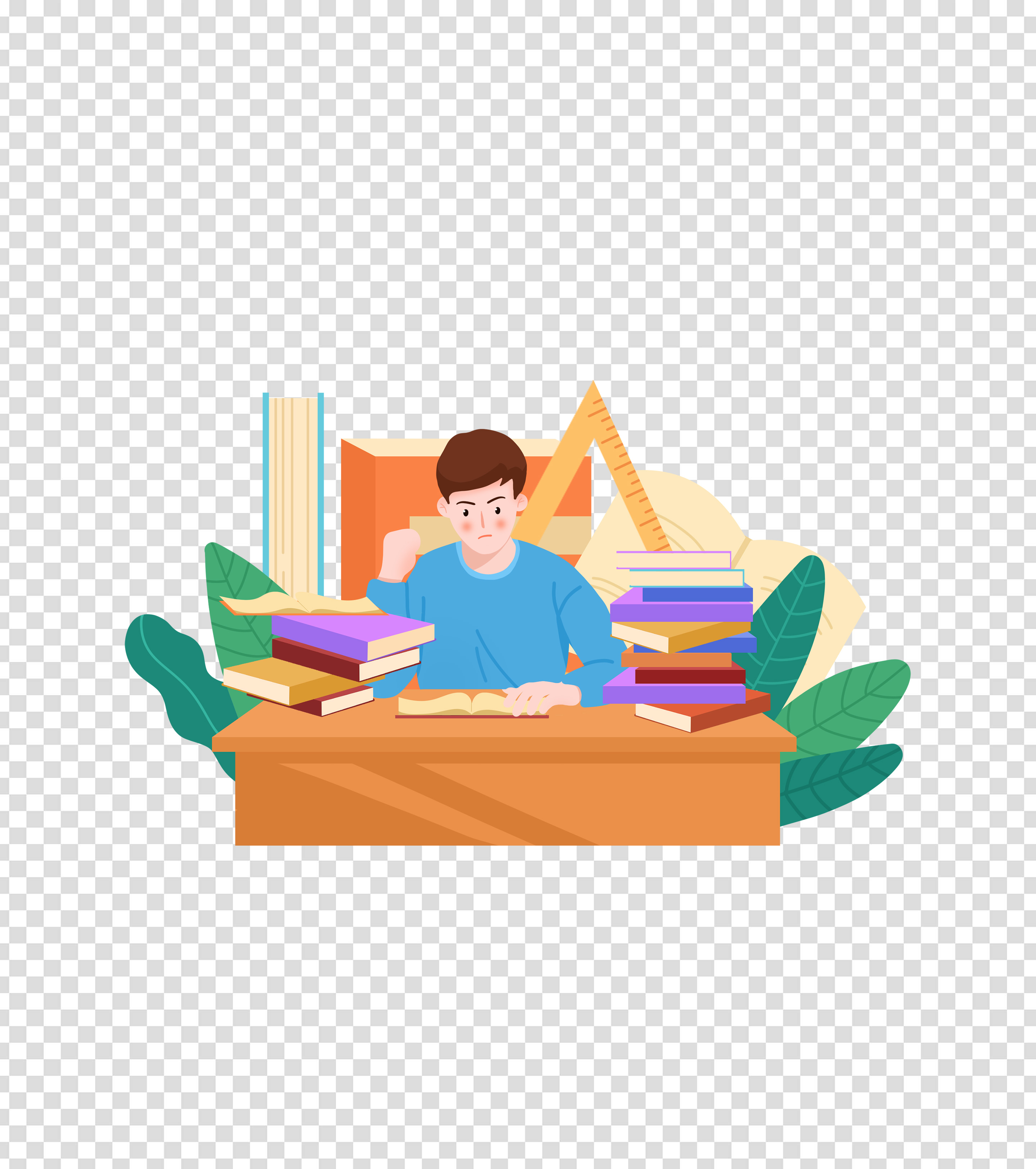 蓝色卡通男孩高考元素