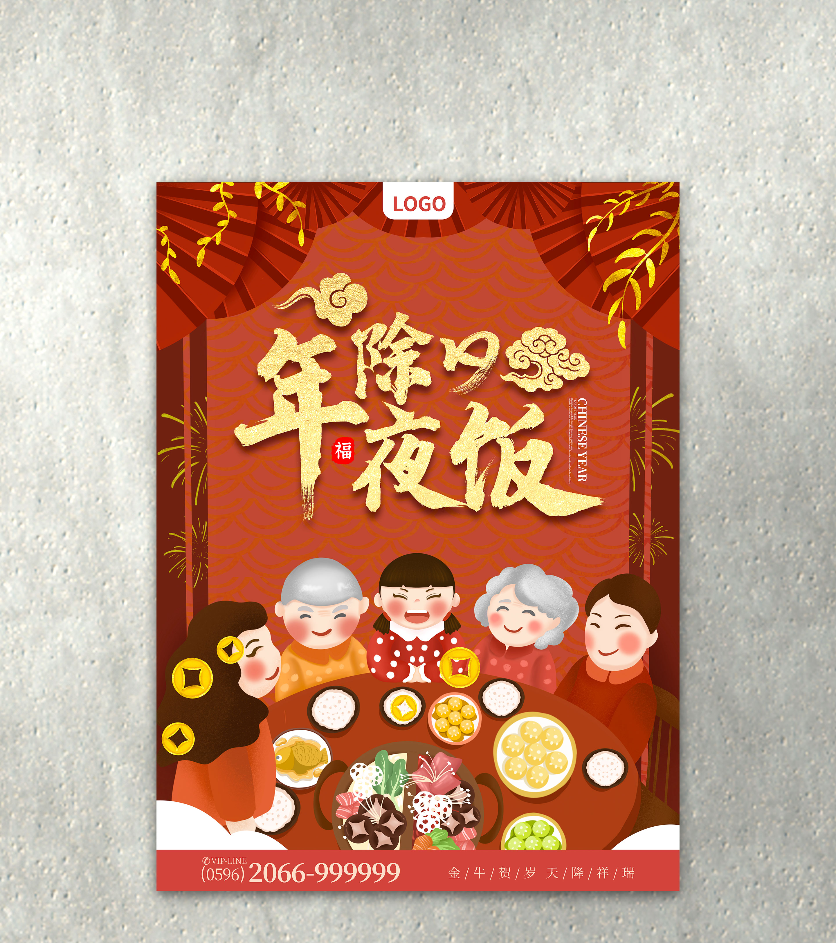 红色新春年夜饭节日海报