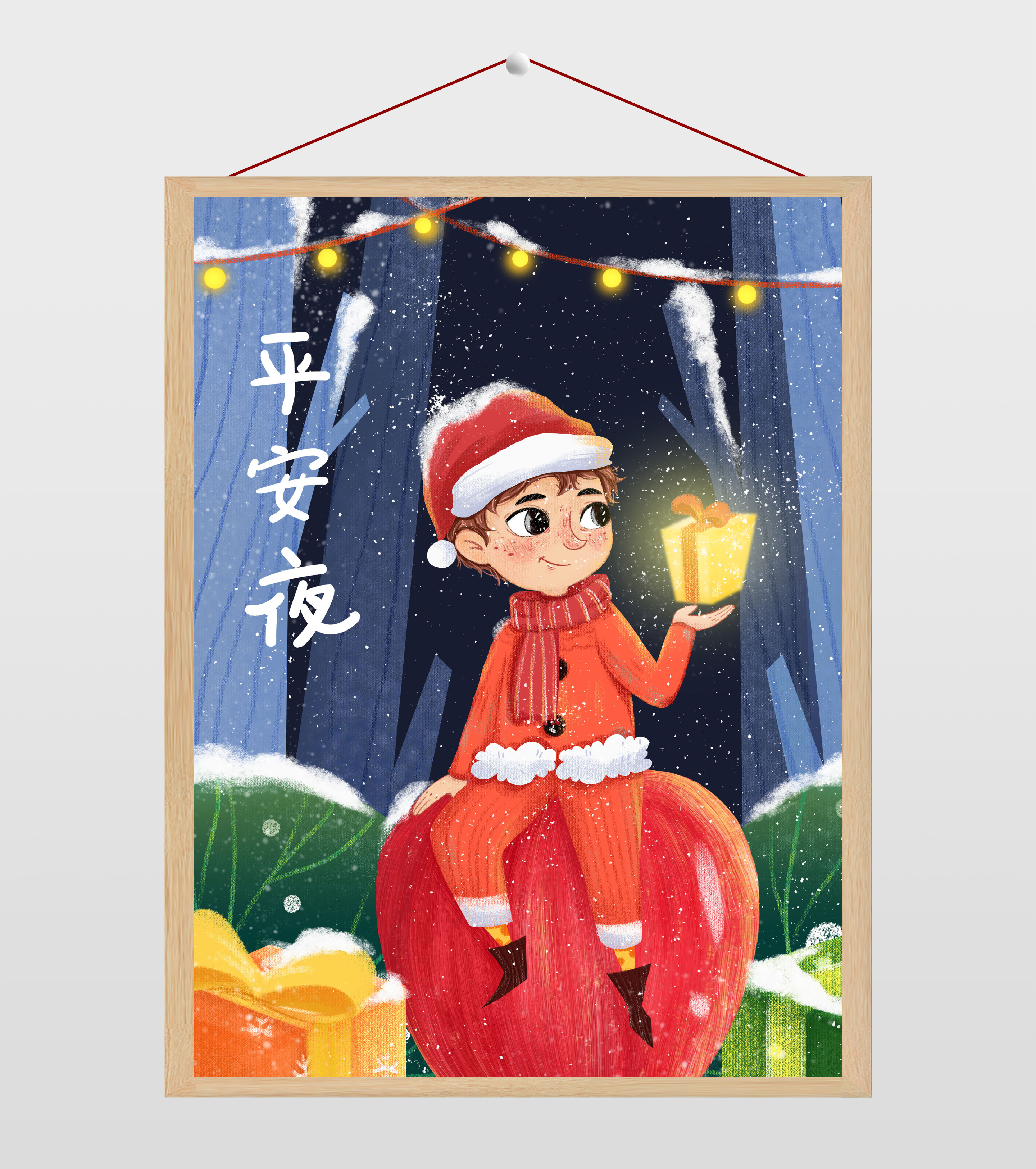 平安夜圣诞小男孩插画