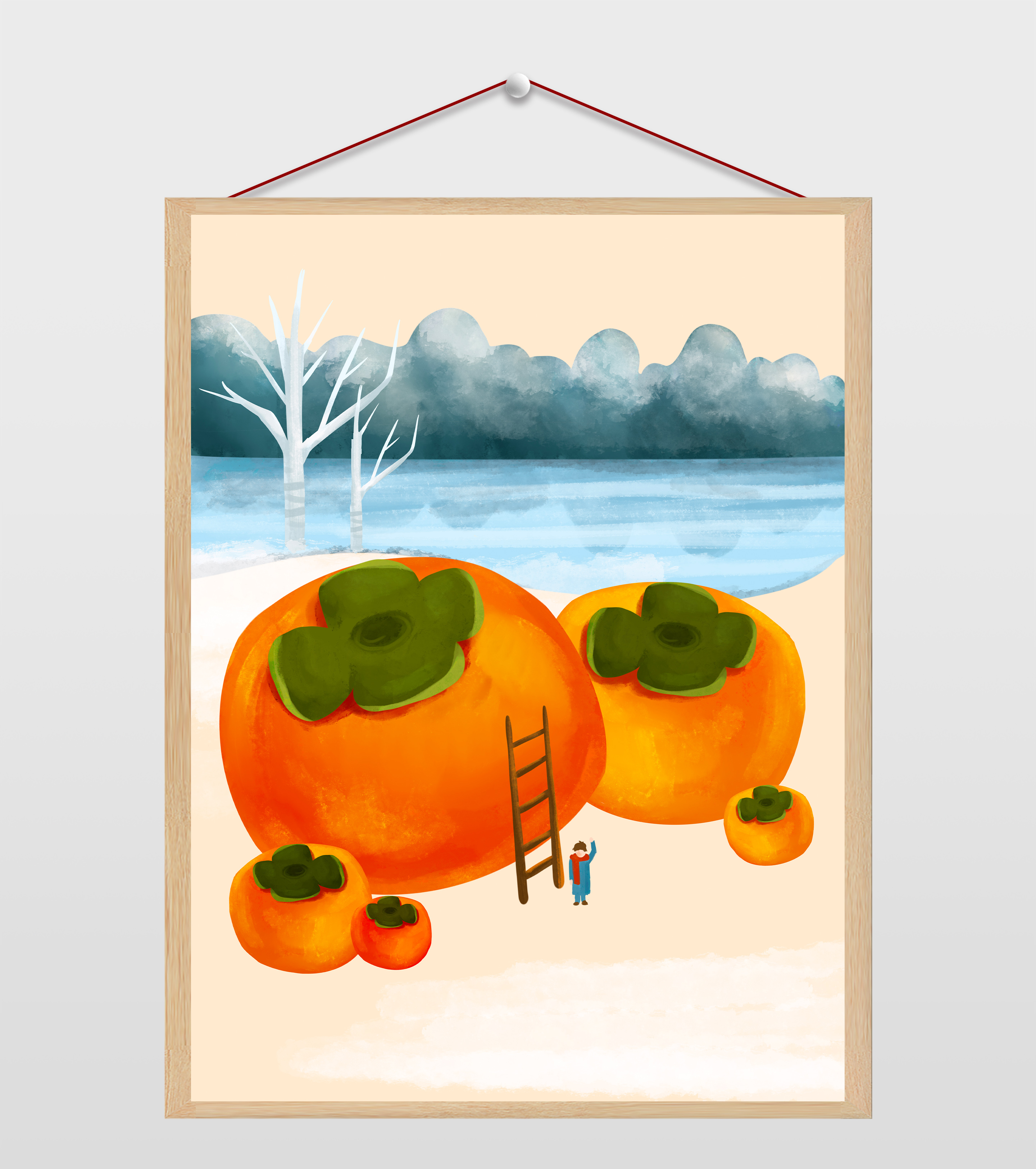 摘红果的女孩插画