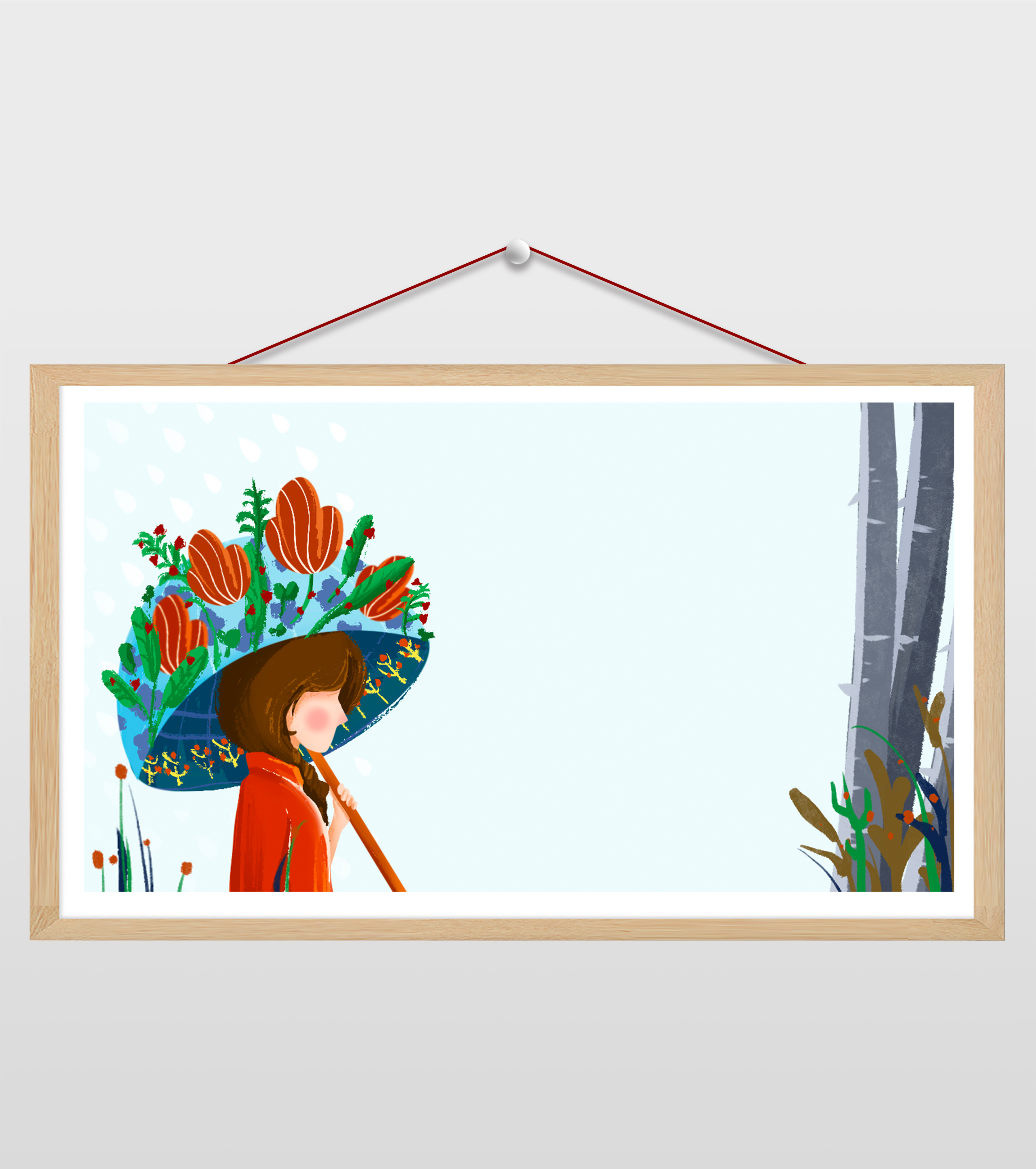 16比9_小清新ppt打伞女孩植物背景