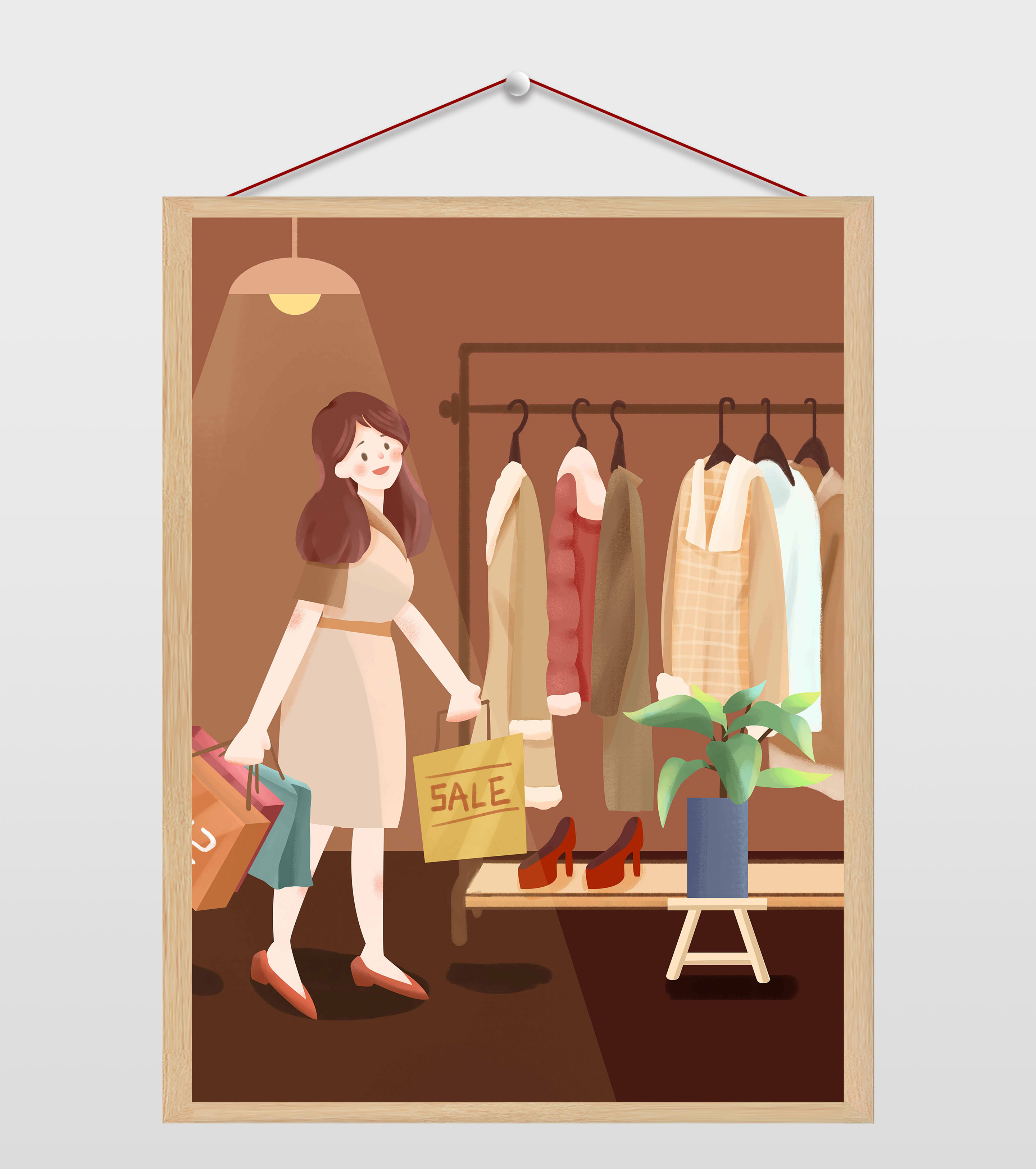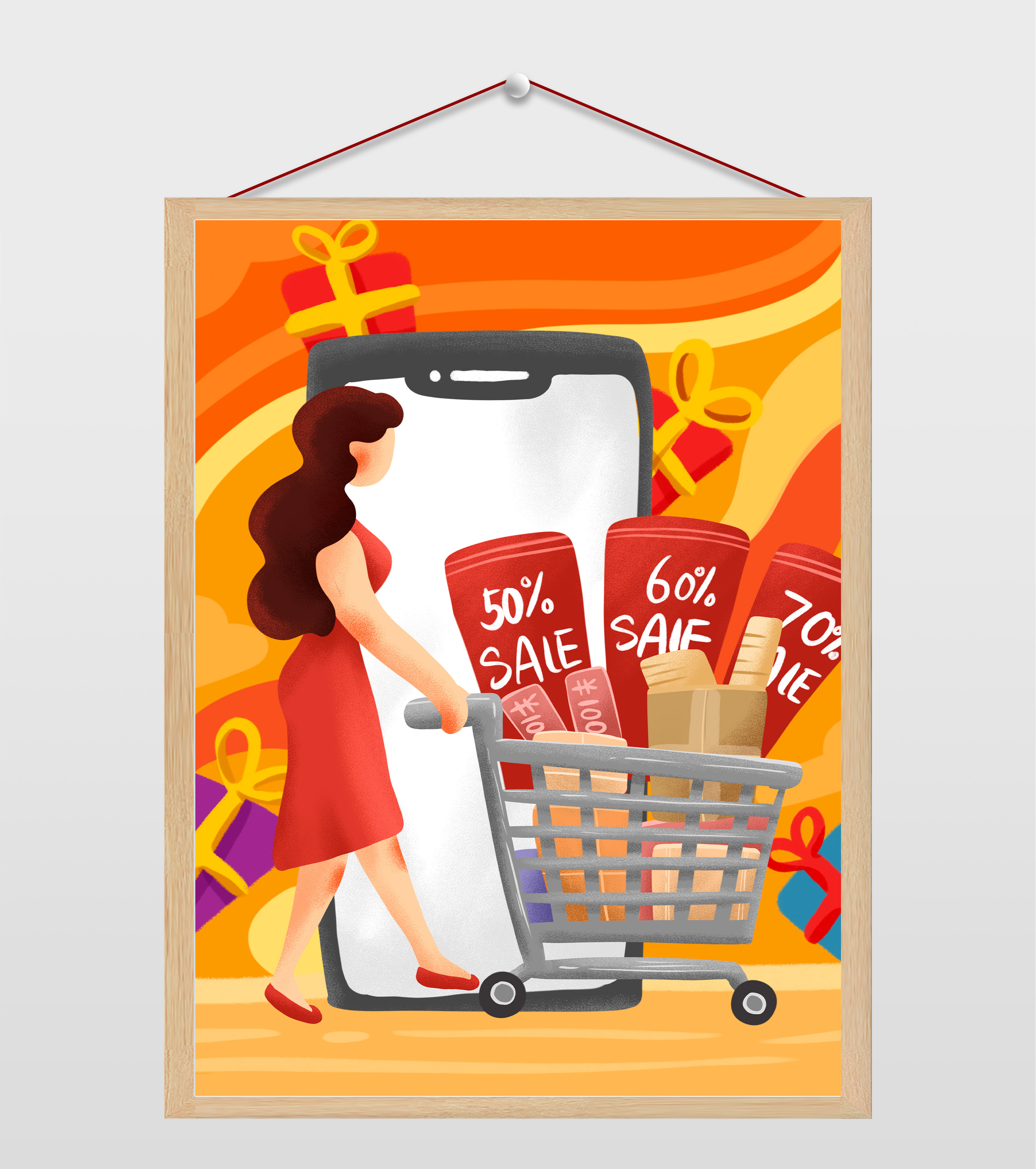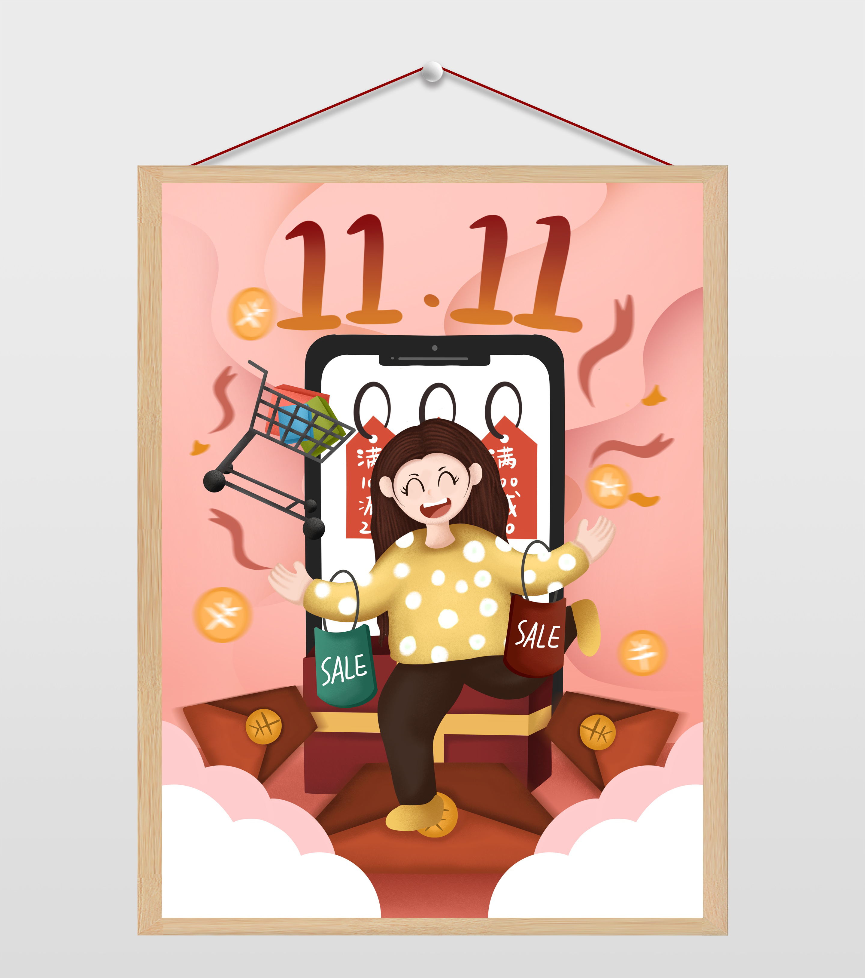 双十一购物的女孩插画