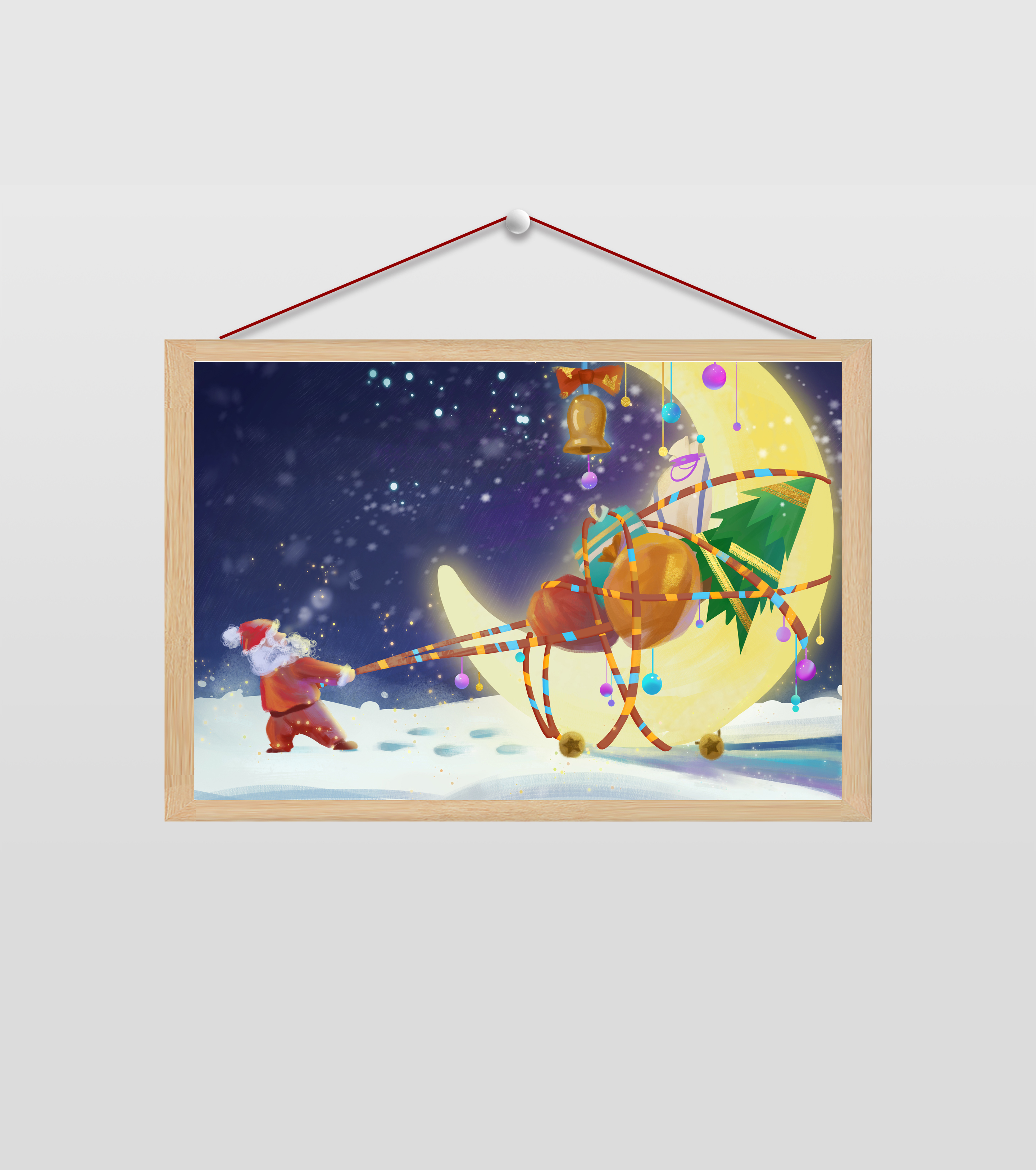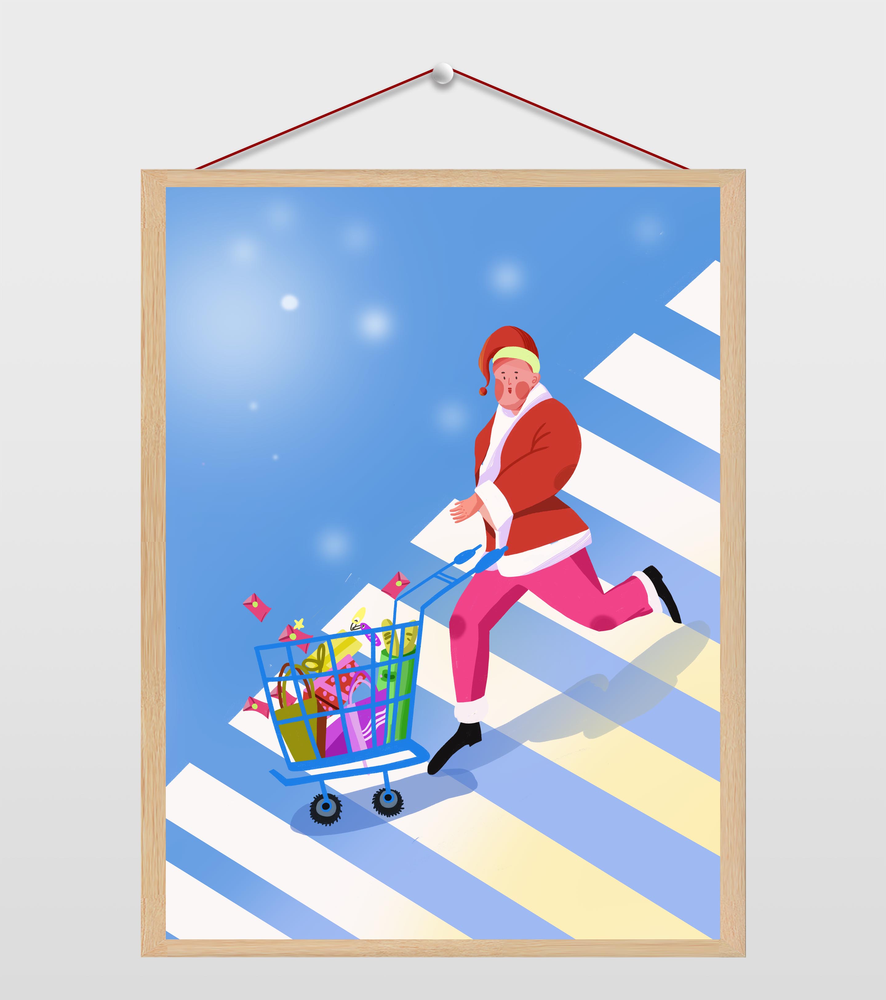 圣诞老人推购物车插画