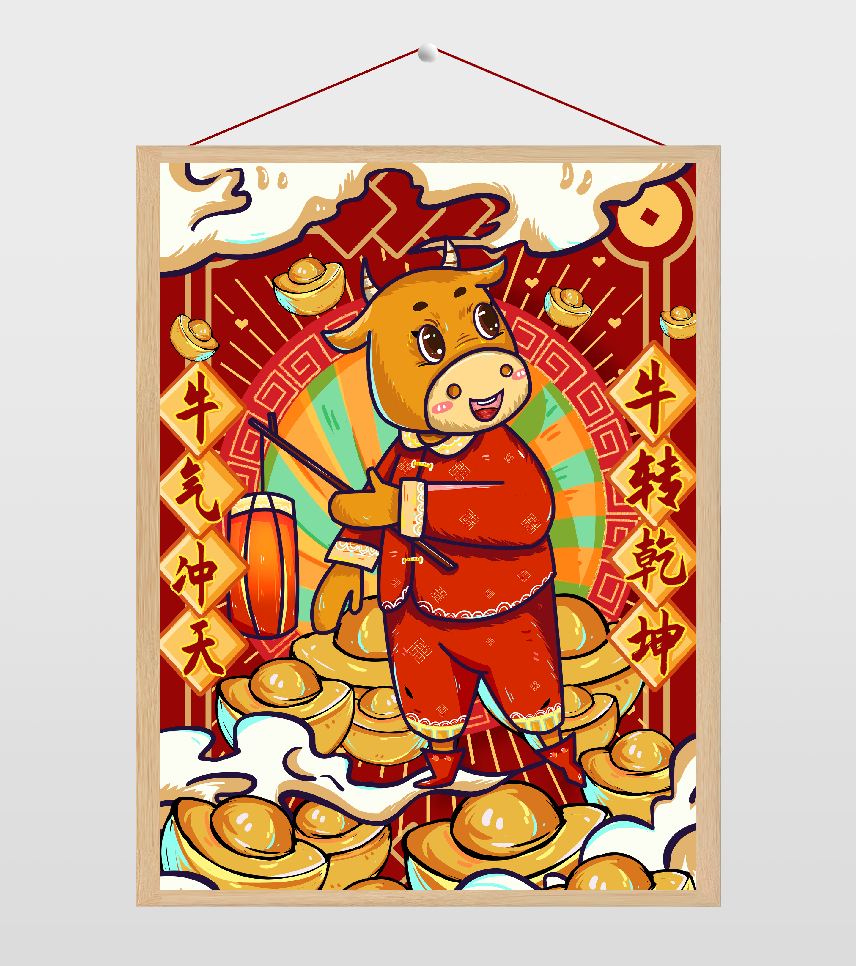 中国风牛气冲天插画