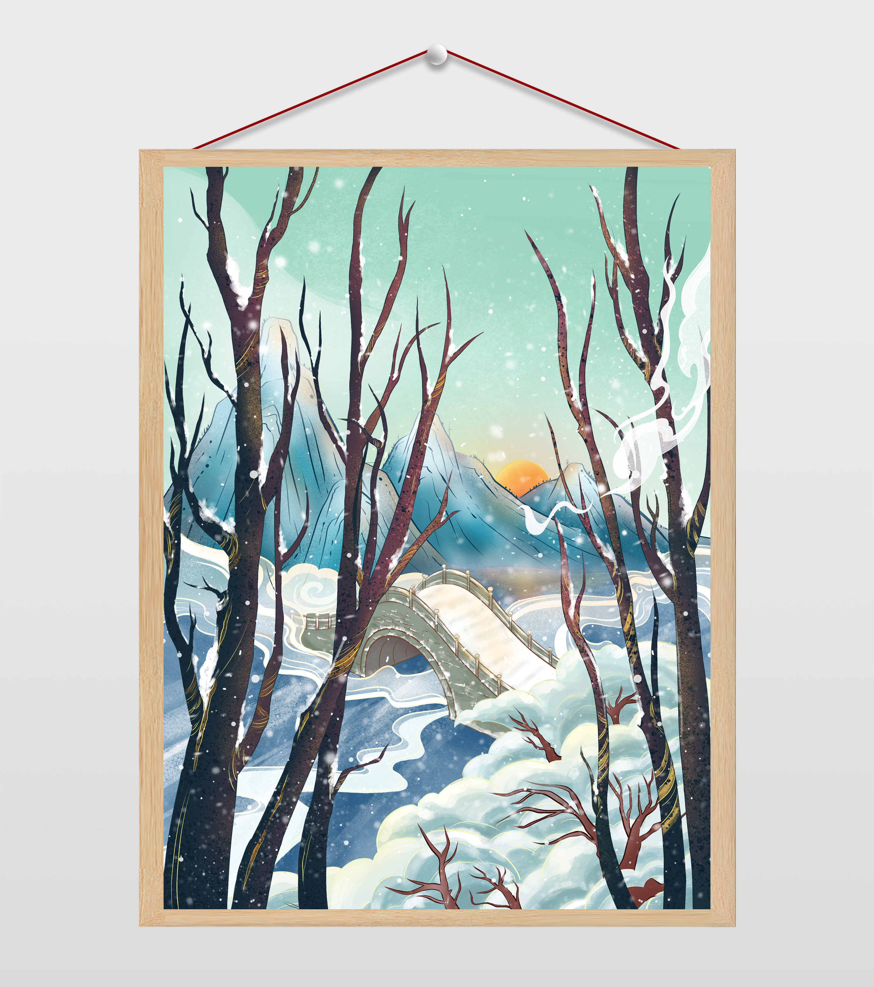 小清新小寒大寒雪天插画