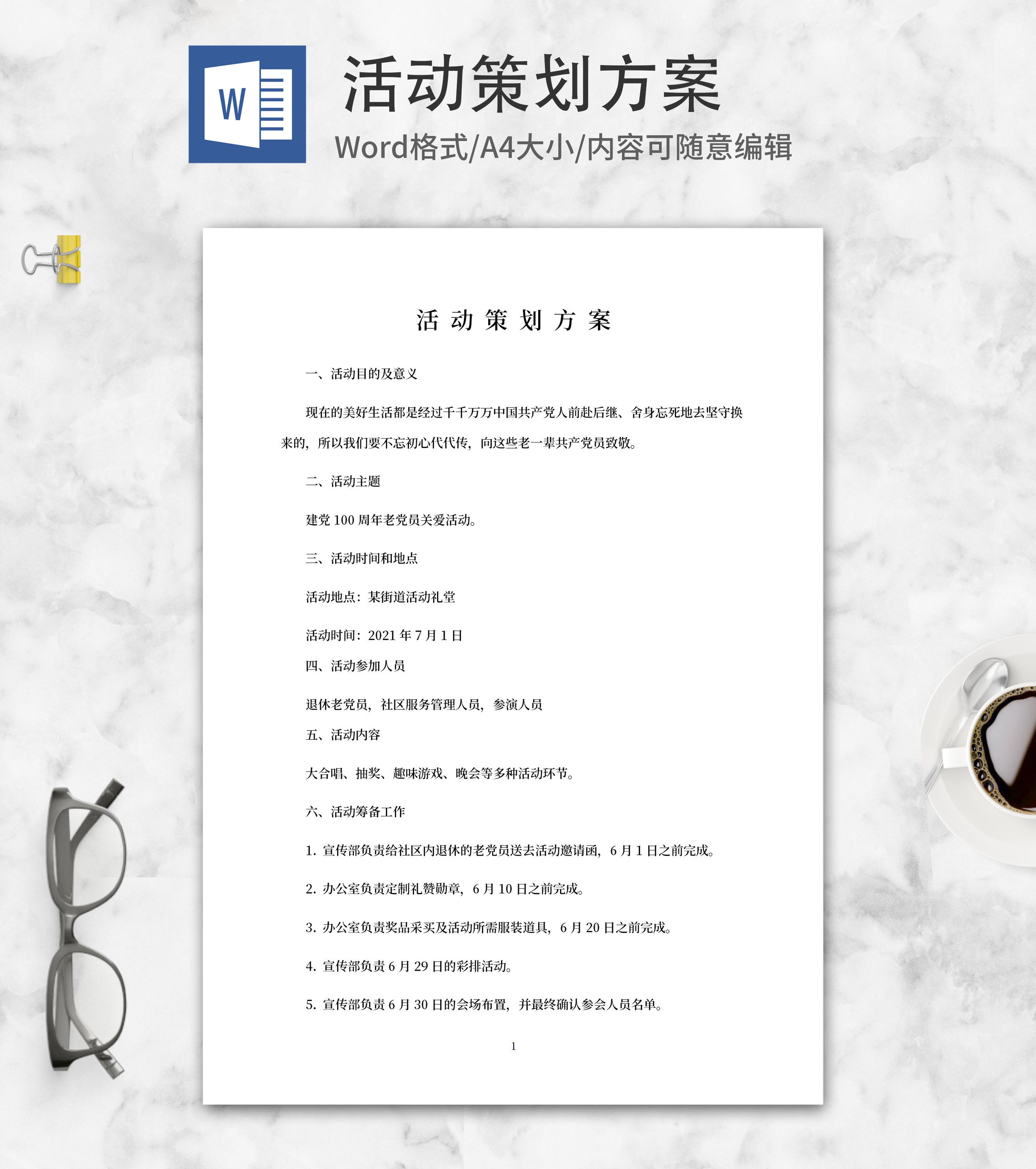 建党100周年老党员关爱活动word模板