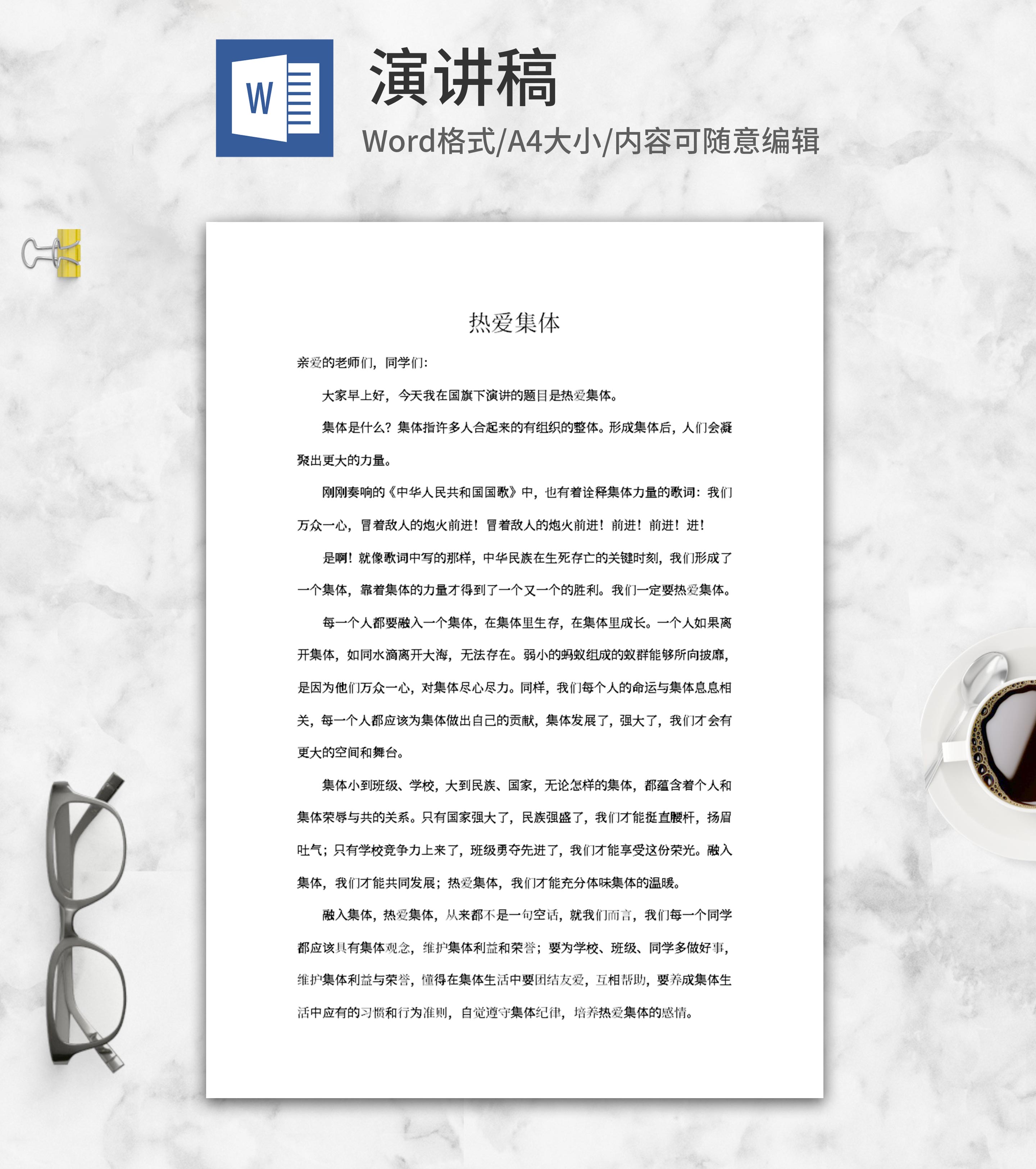 热爱集体国旗演讲稿word模板