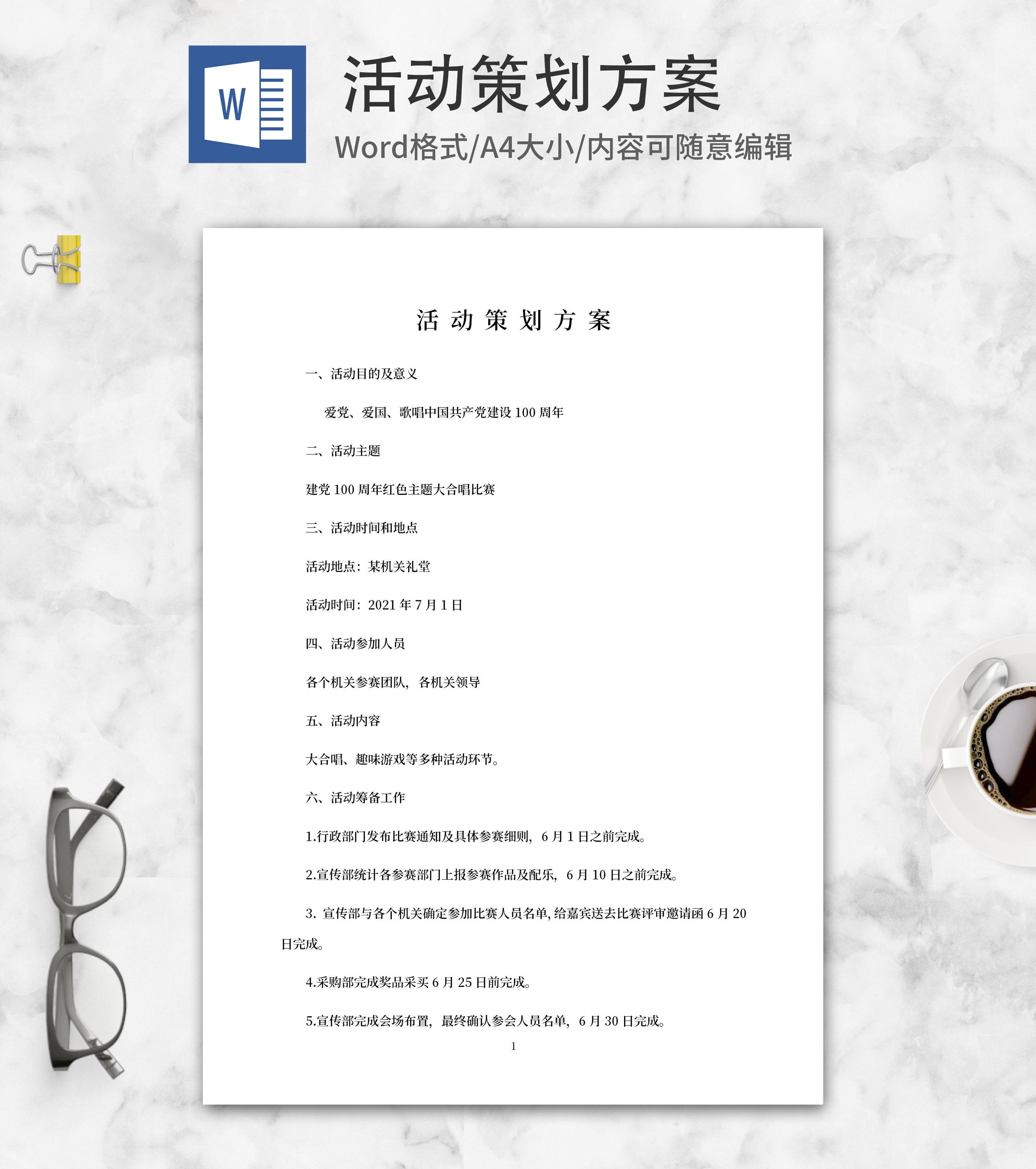建党百年校园策划方案word模板