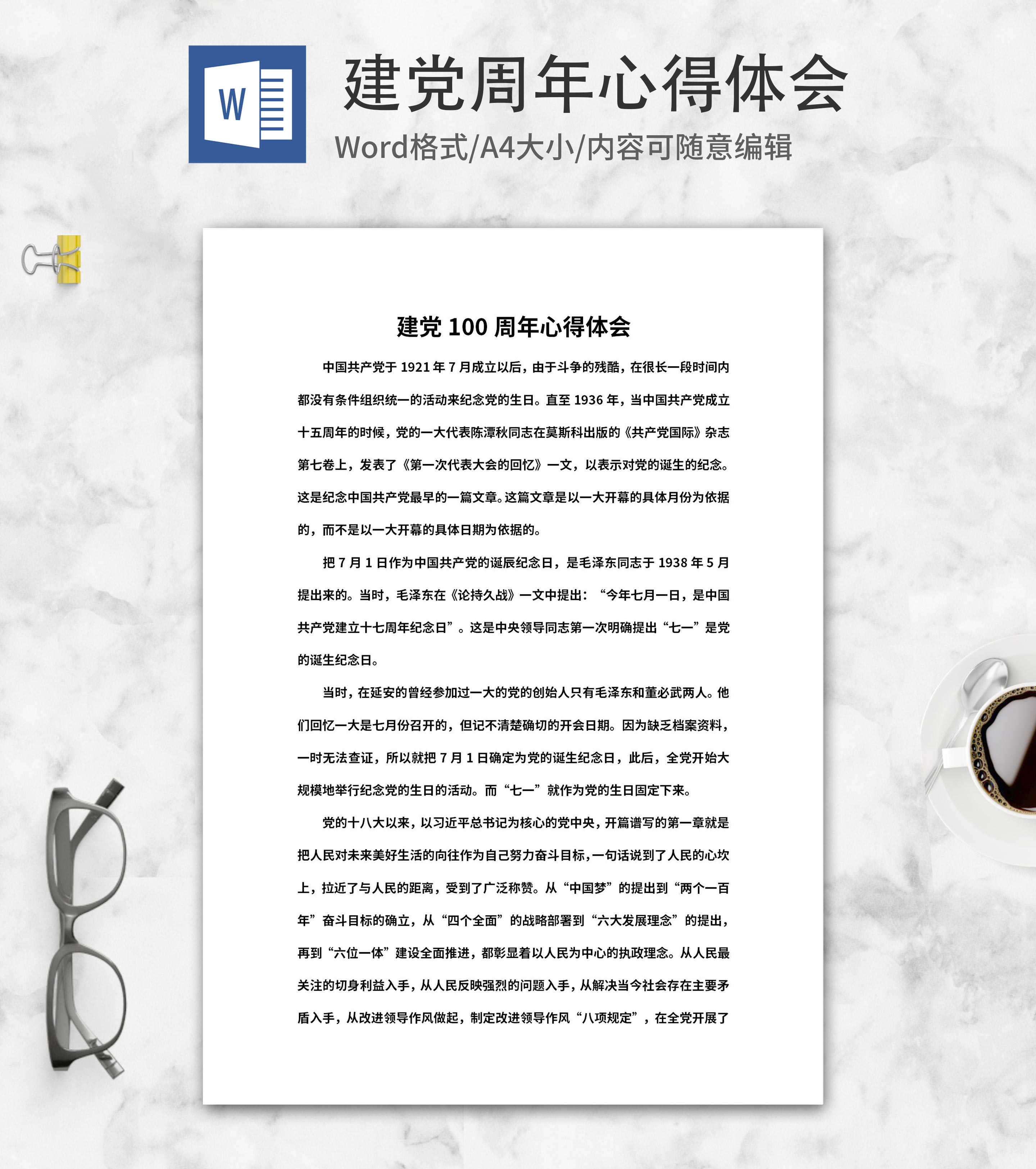 建党100周年心得word模板