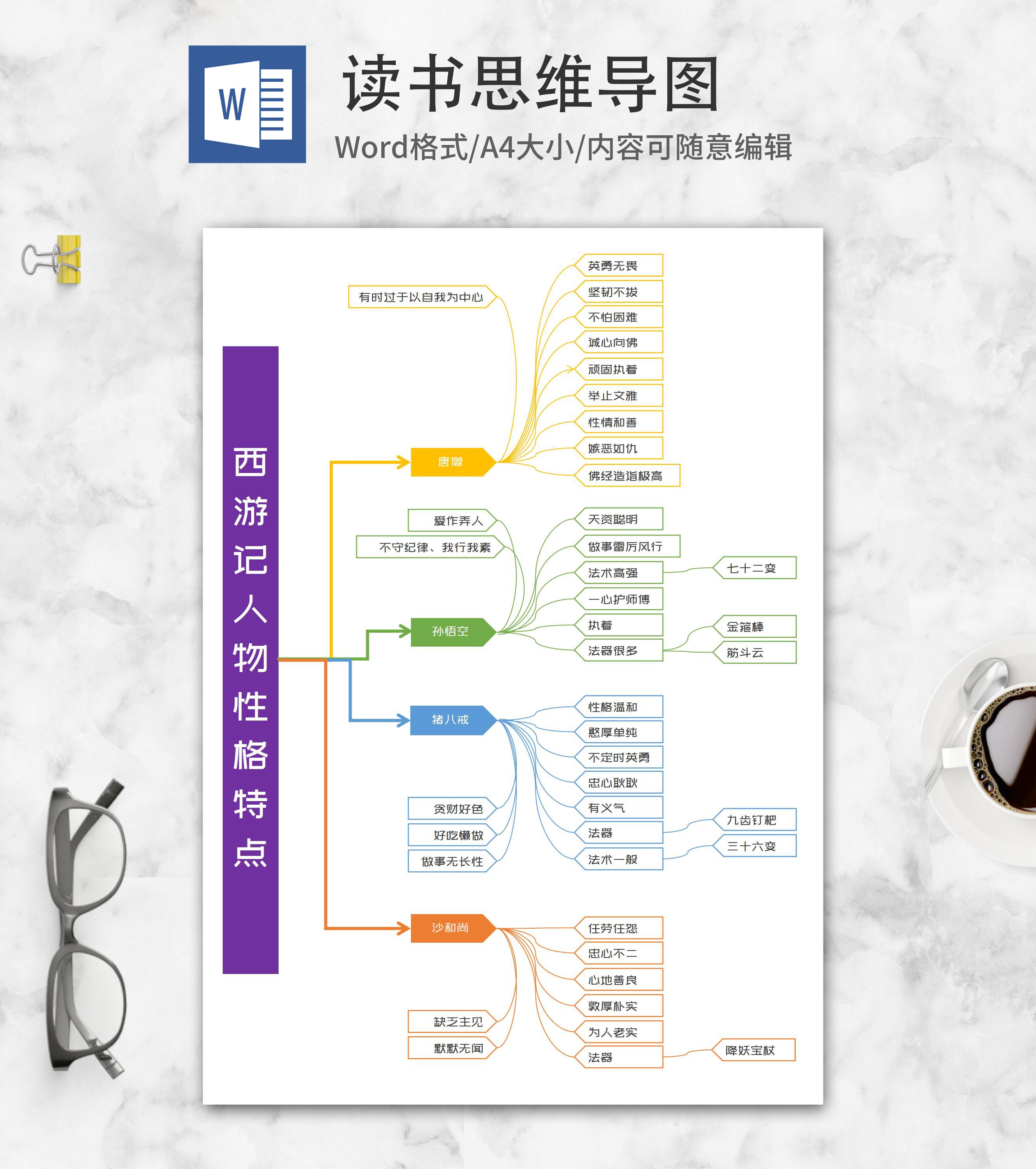 西游记人物性格思维导图word模板