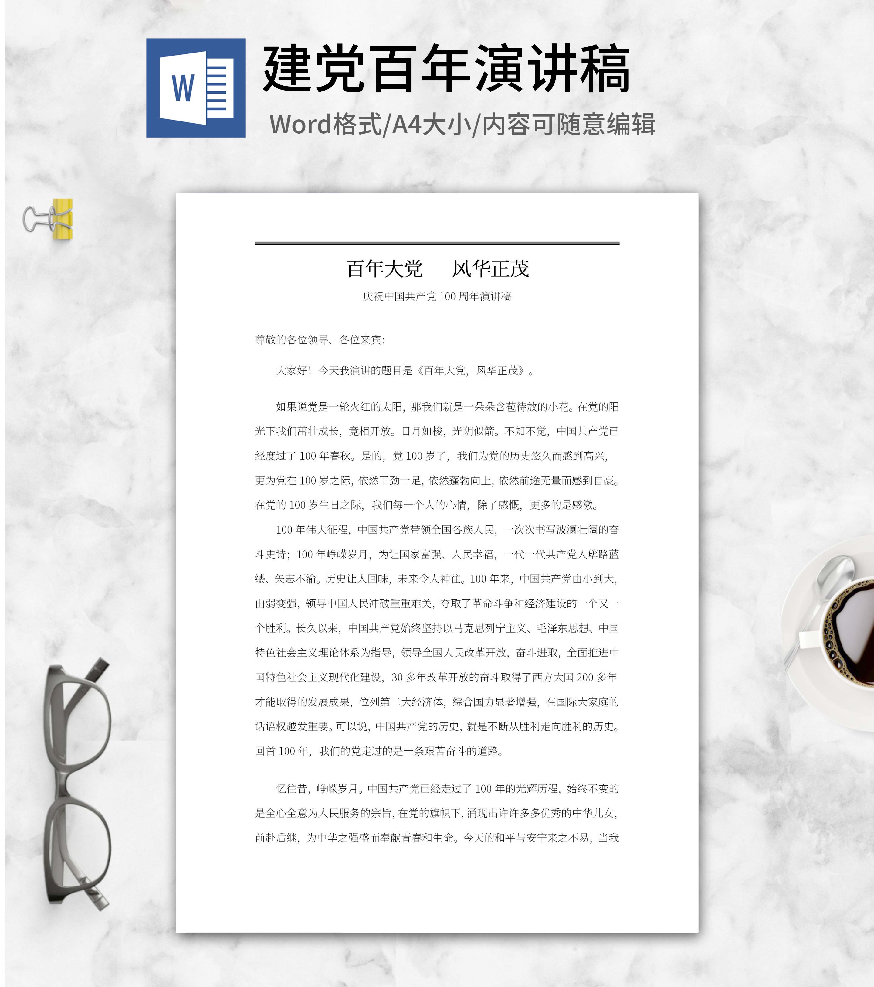 百年大党,风华正茂庆建党演讲word模板