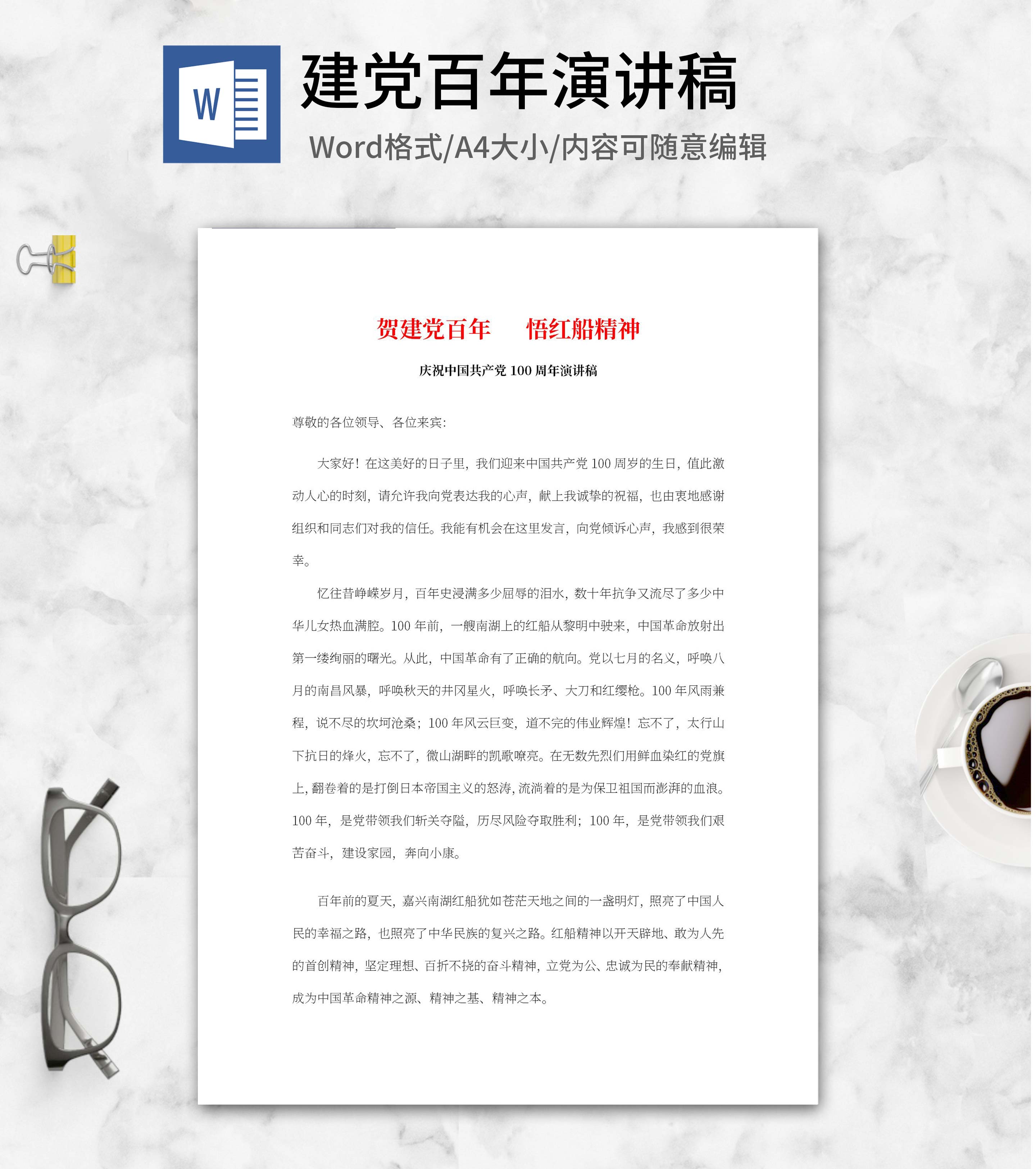 庆祝中国共产党100周年演讲稿word模板