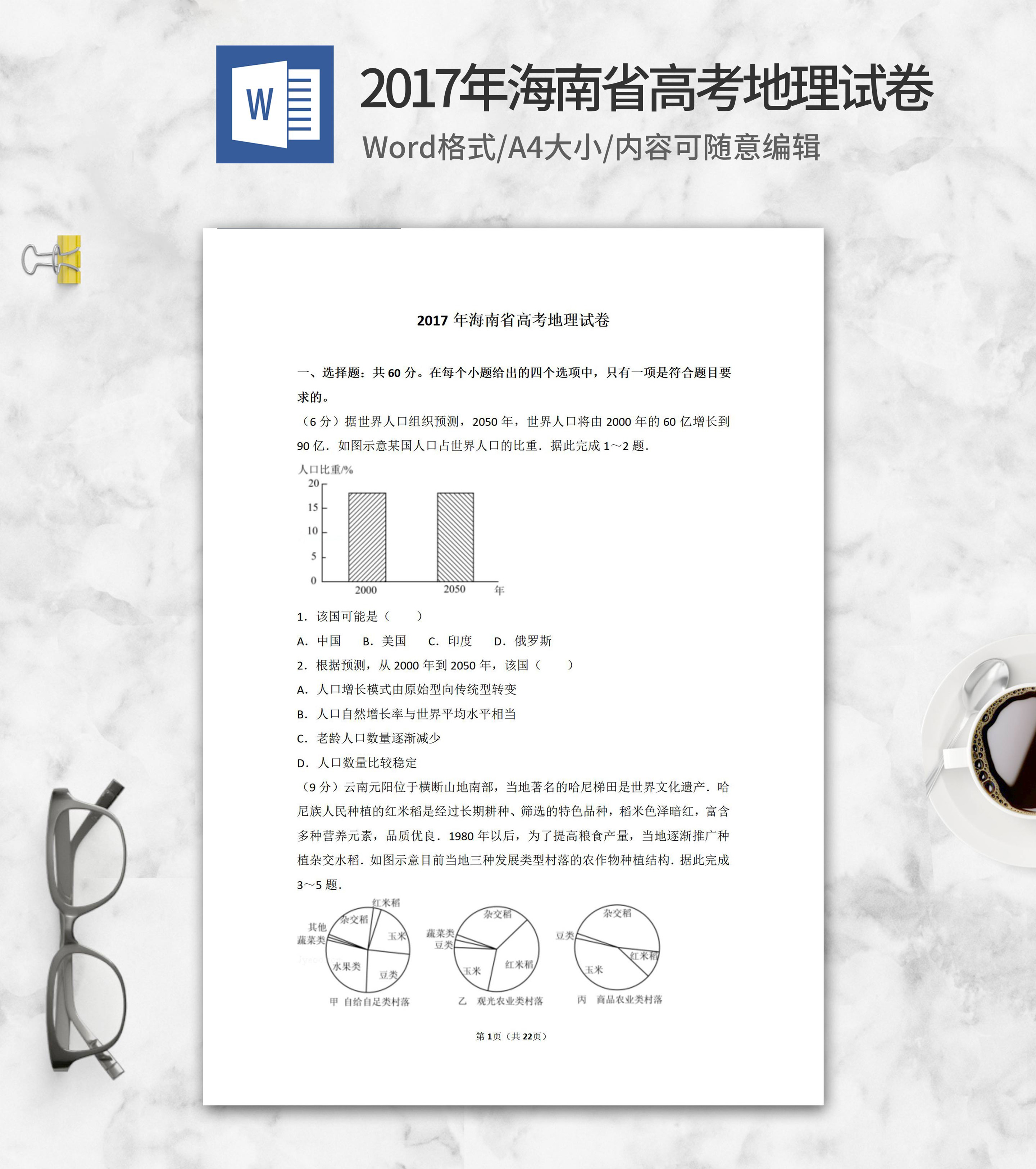 2017年海南省高考地理试卷word模板