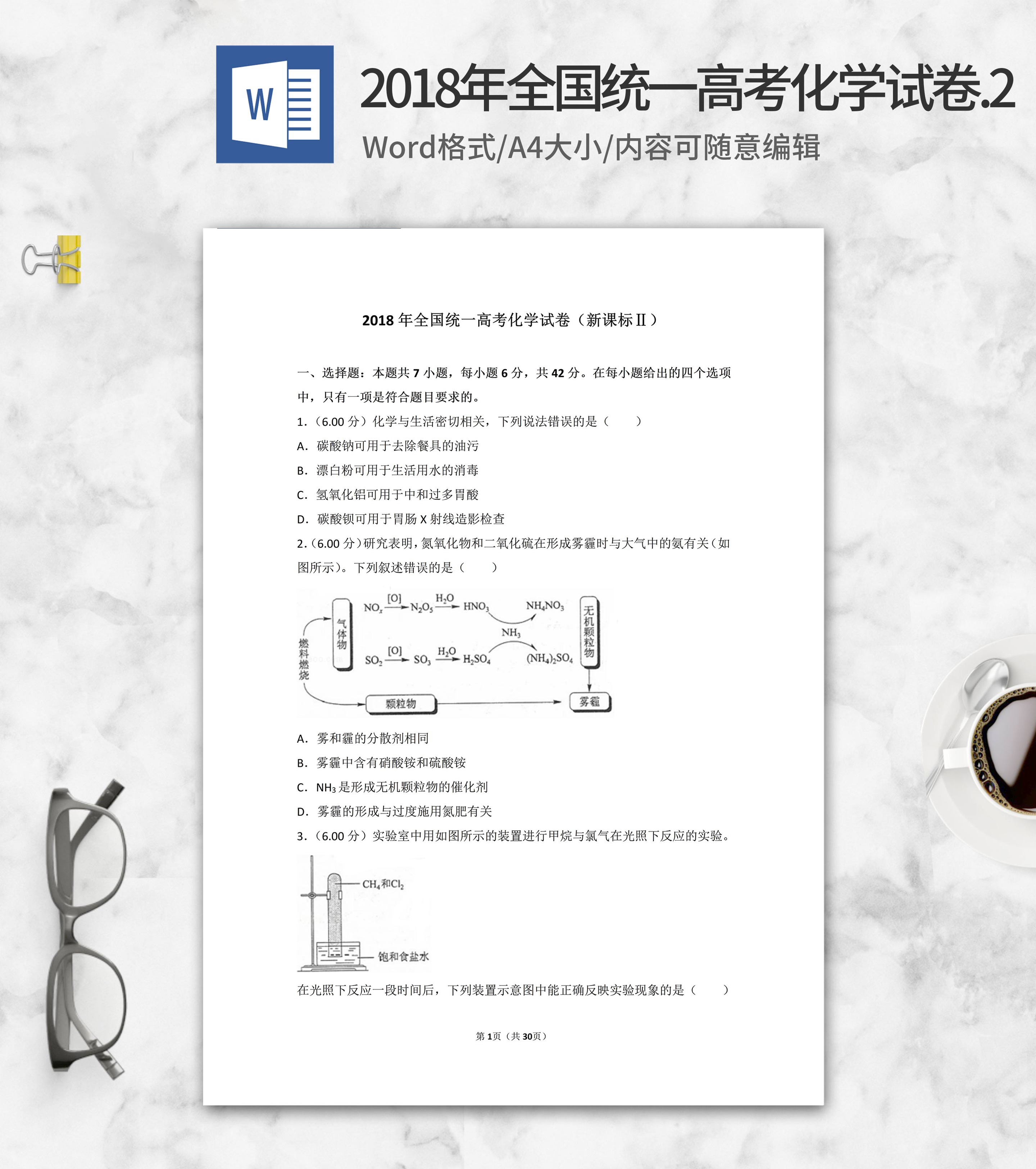 2018年全国统一高考化学试卷新课标2word模板