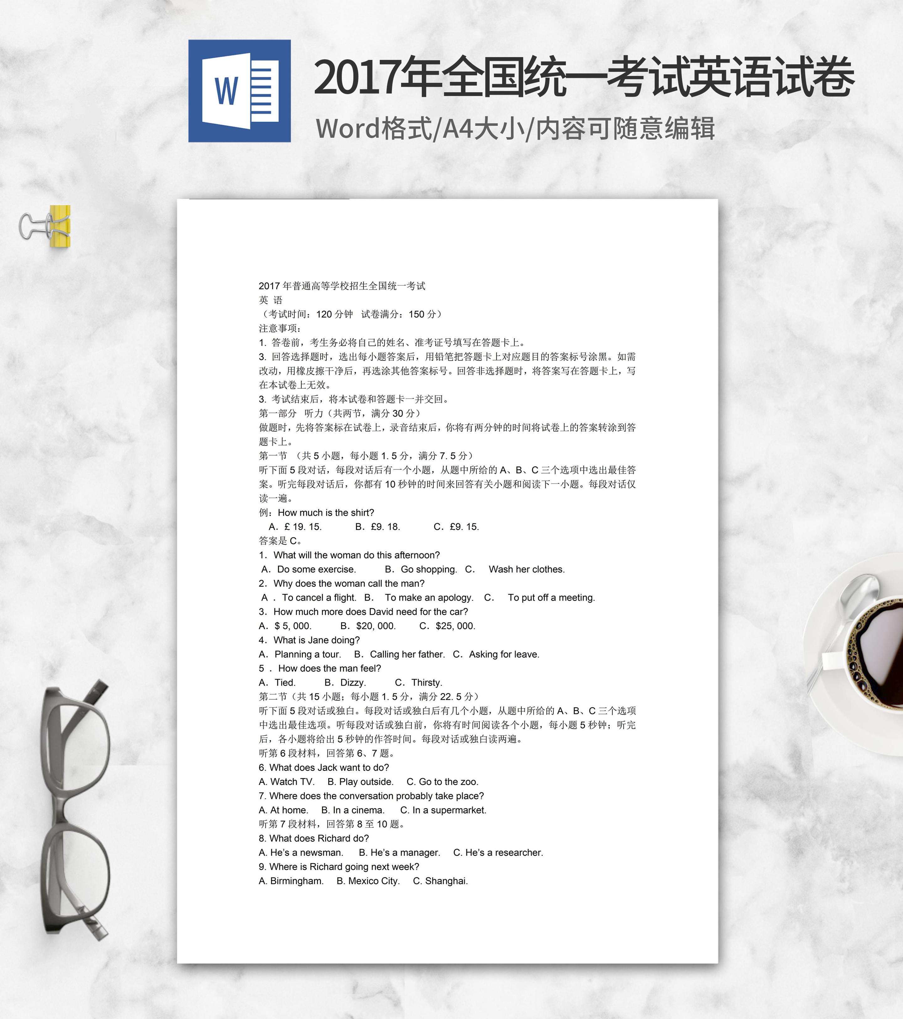 2017年全国统一英语试卷