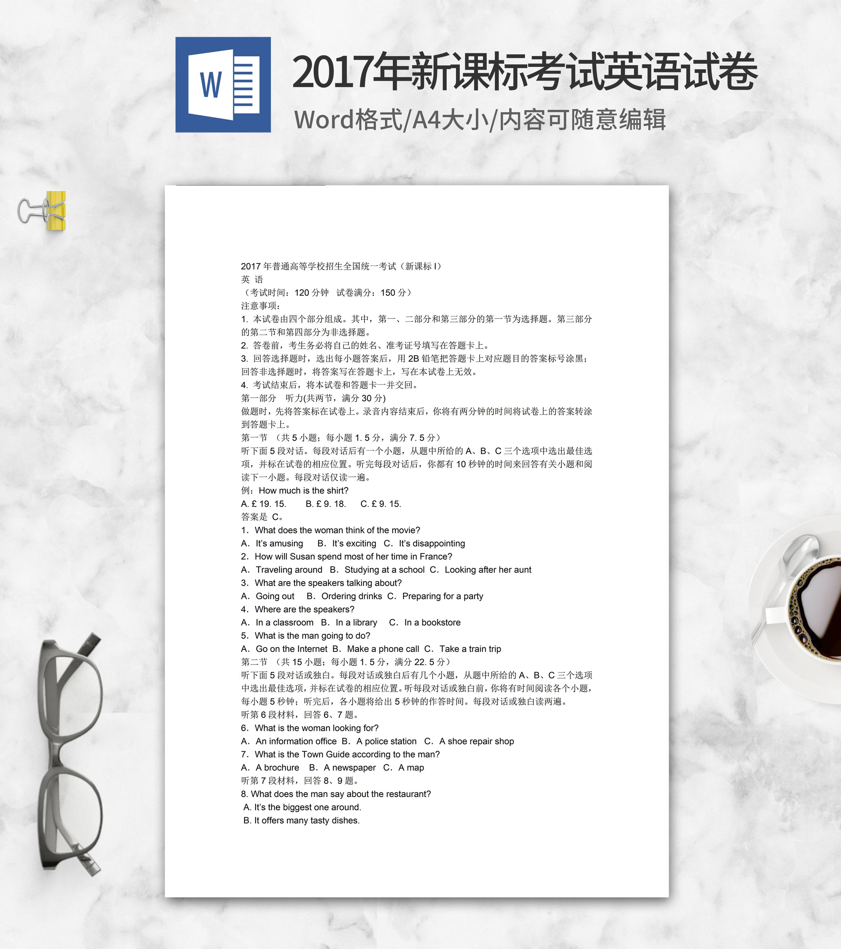 2017年新课标全国统一英语试卷1卷