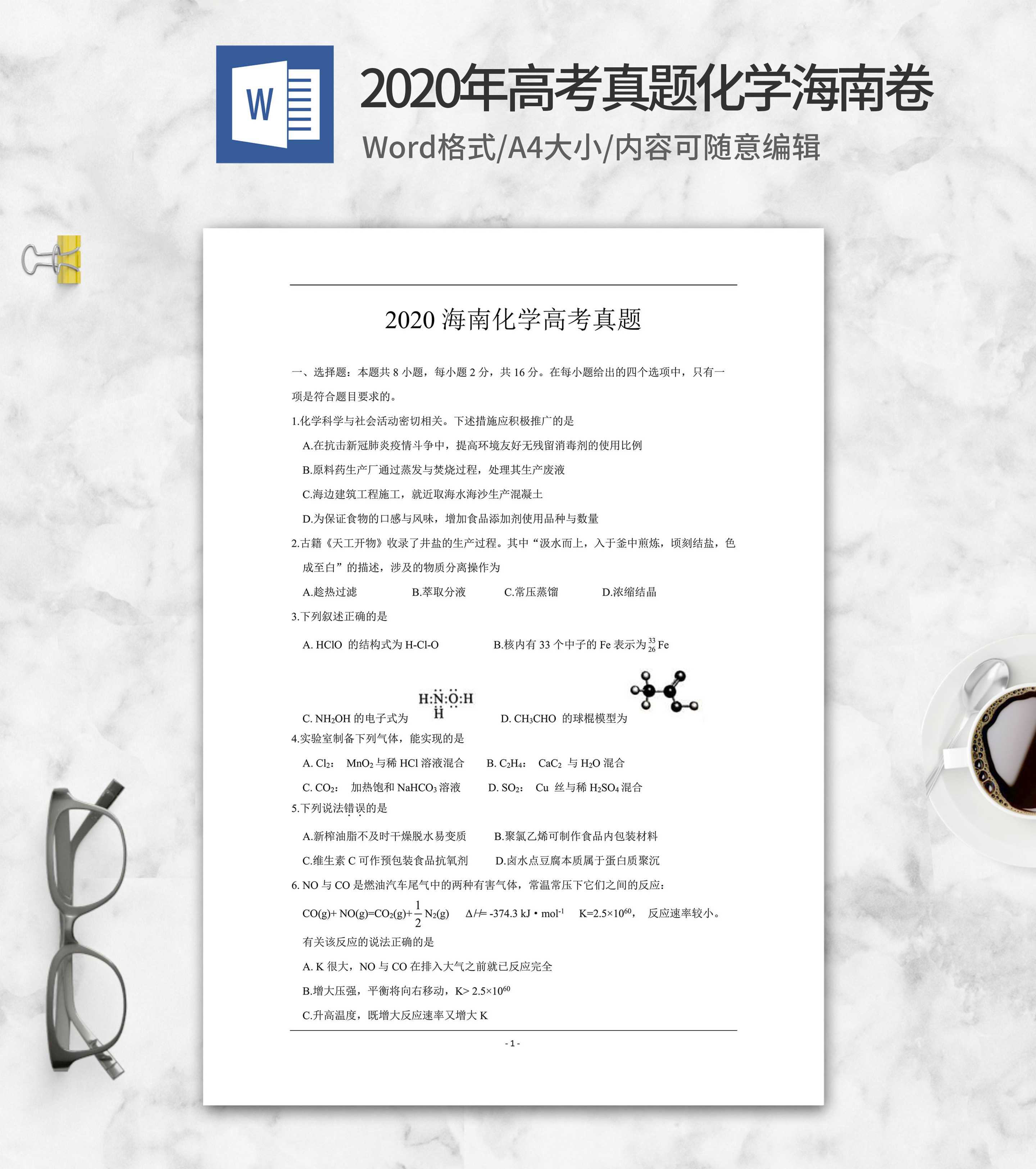 2020年高考真题化学海南卷word模板