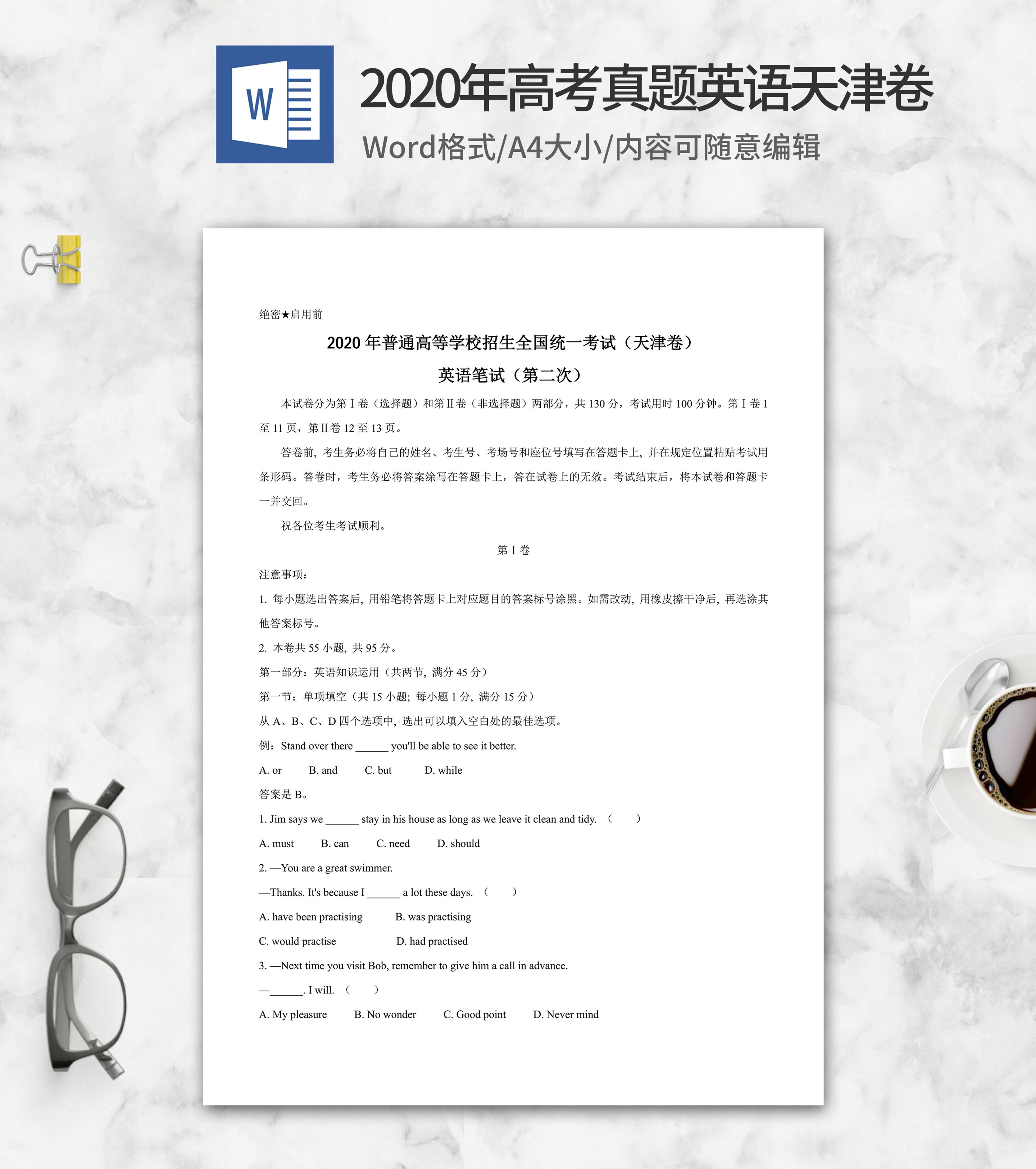 2020年高考真题英语天津卷word模板