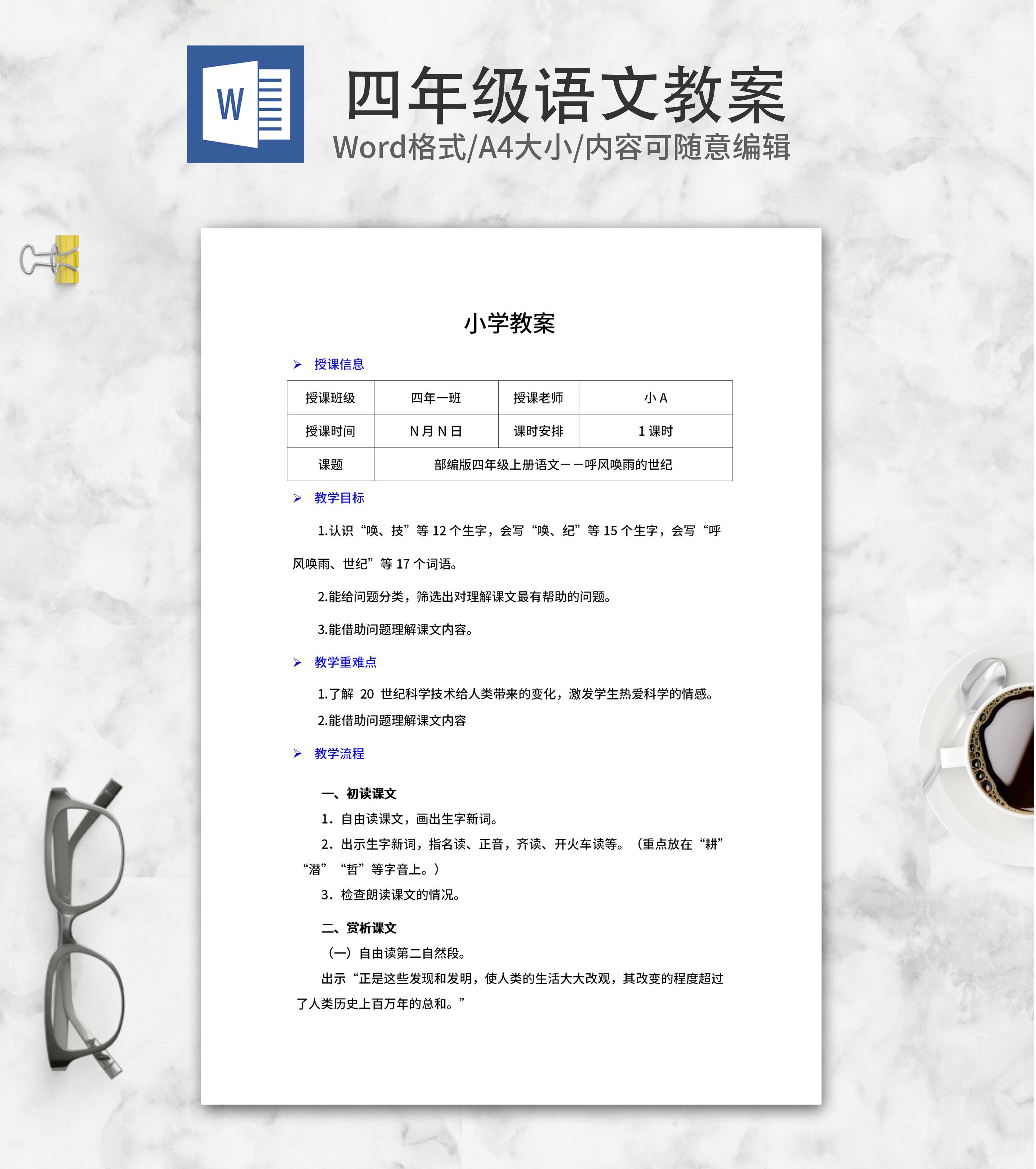 四年级上语文《呼风唤雨的世纪》教案word模板