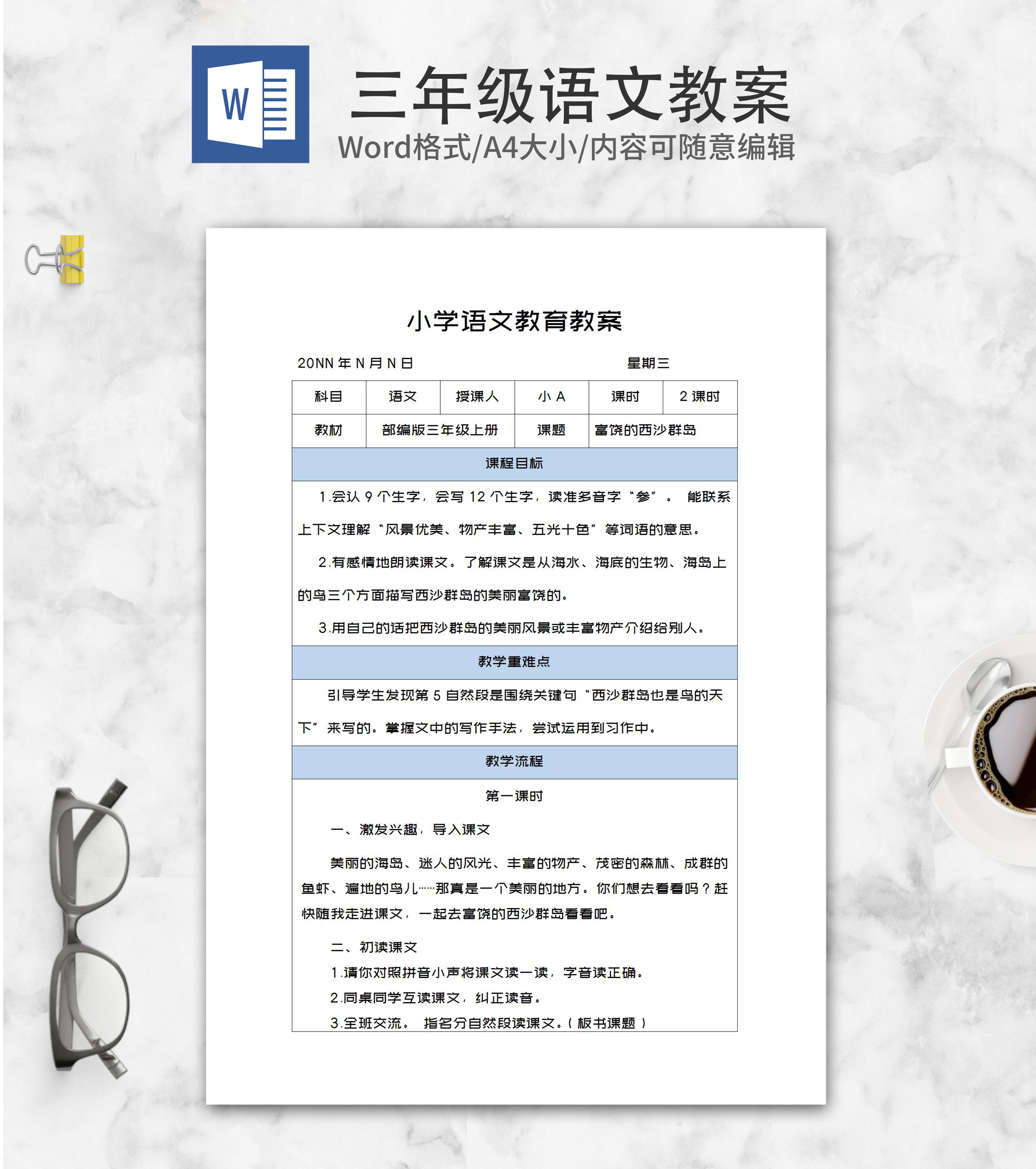 小学三年级语文《富饶的西沙群岛》教案word模板