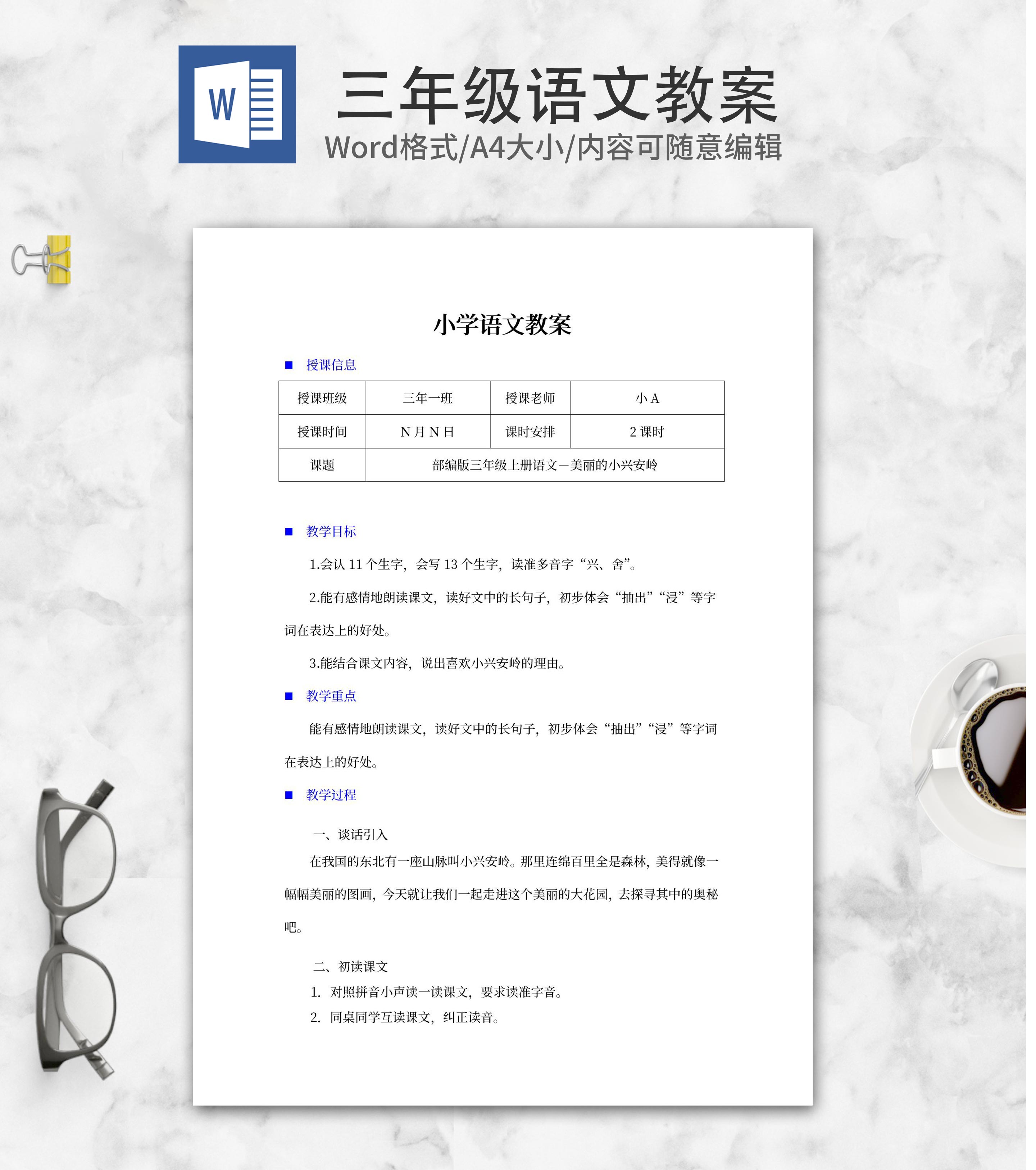 小学三年级课文《美丽的小兴安岭》教案word模板