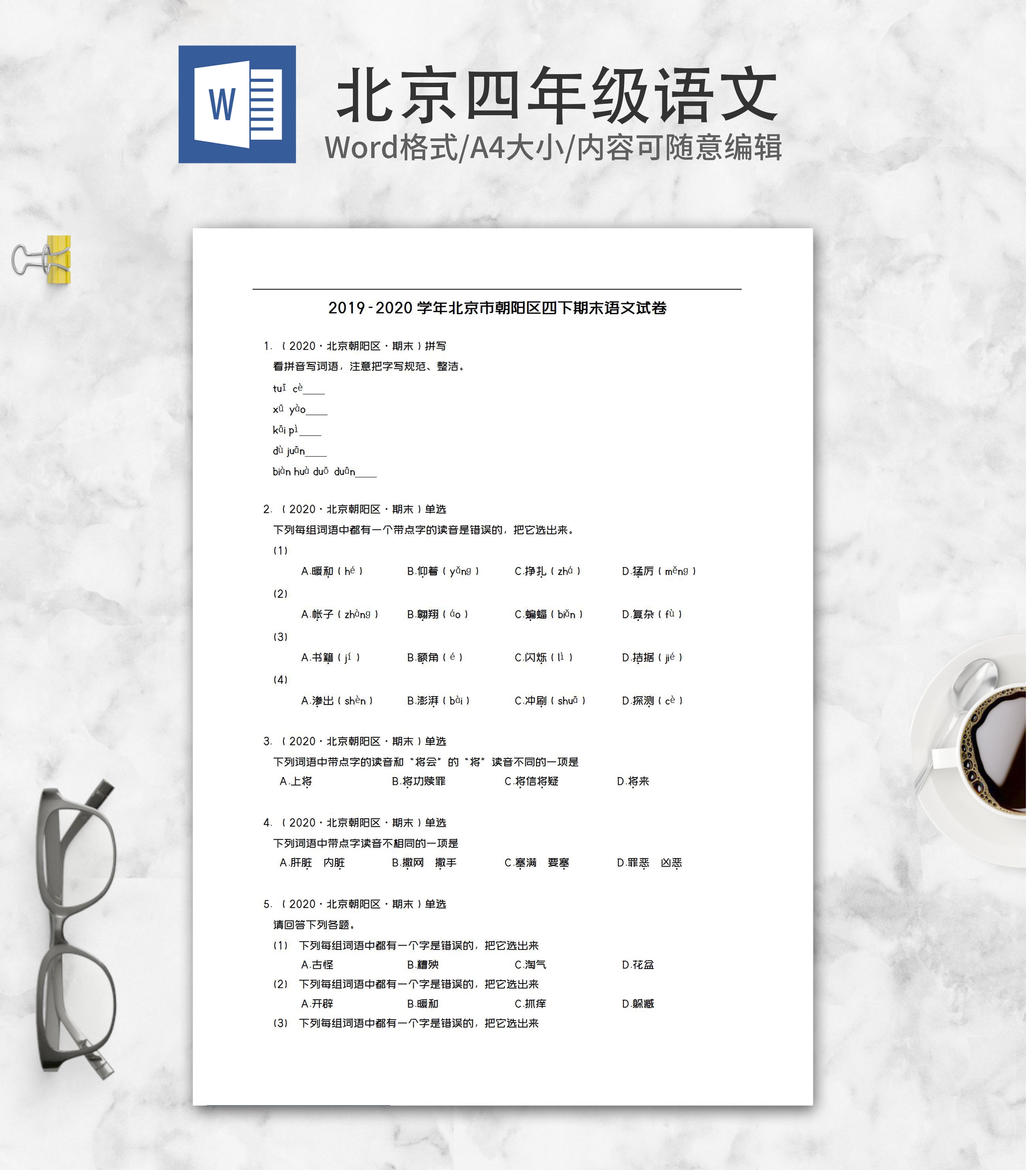 北京市朝阳区四年级下期末语文试卷word模板