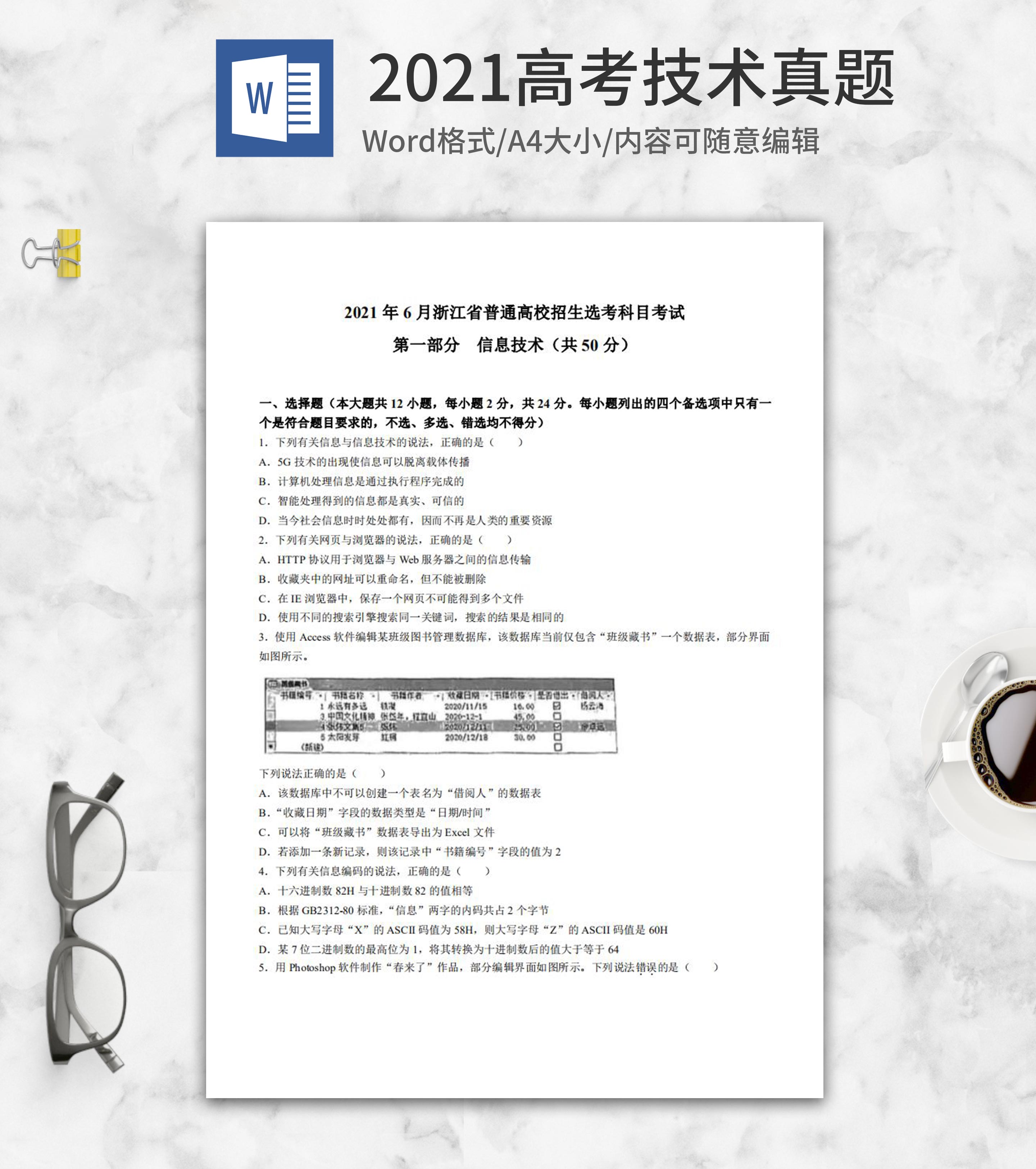 2021高考浙江省技术真题含答案